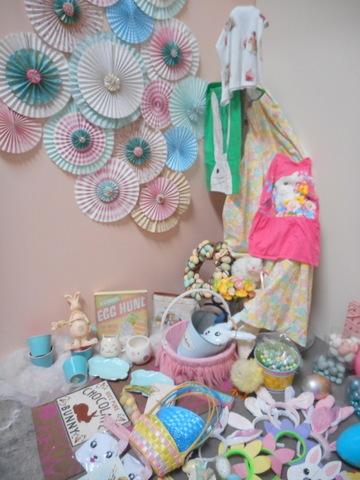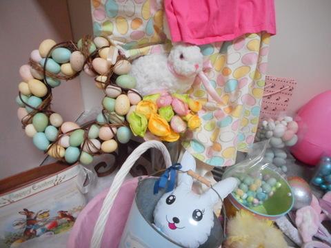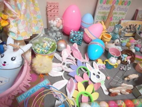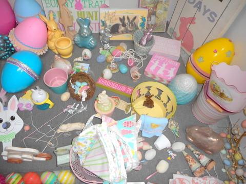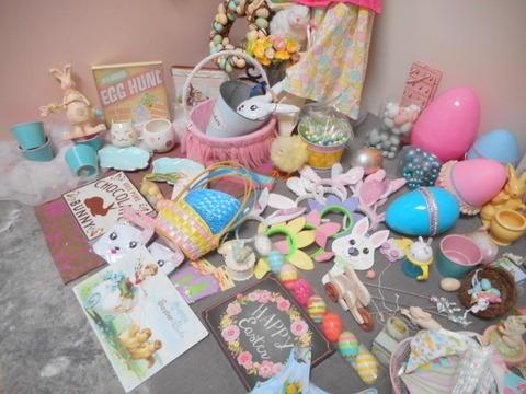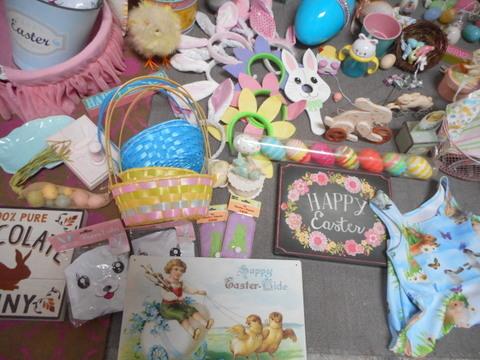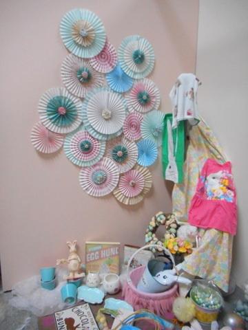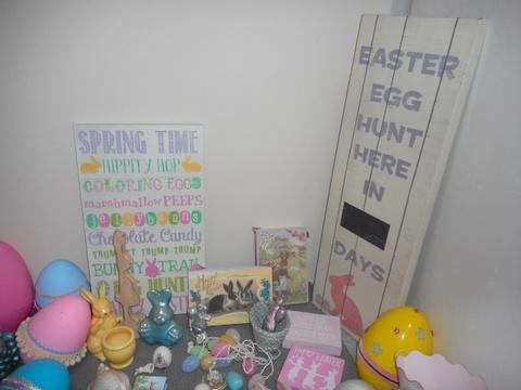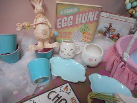 Table cloth, napkins, Signs, Ceramic Pots, Paper wall decor, Egg wreath+ More