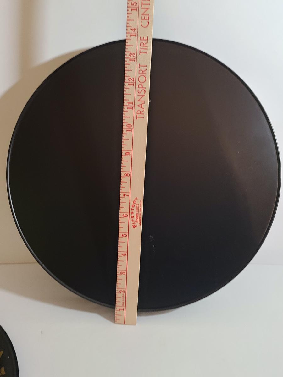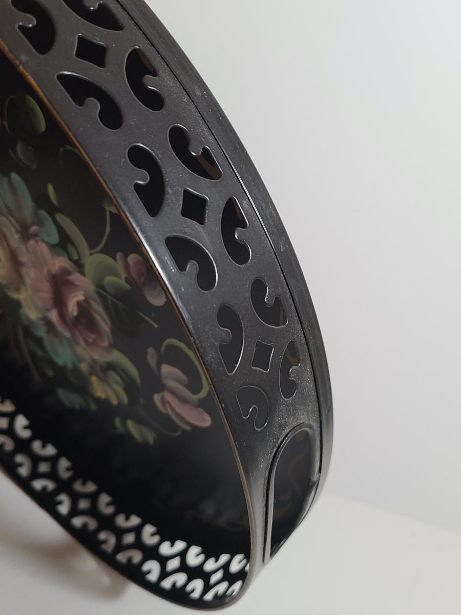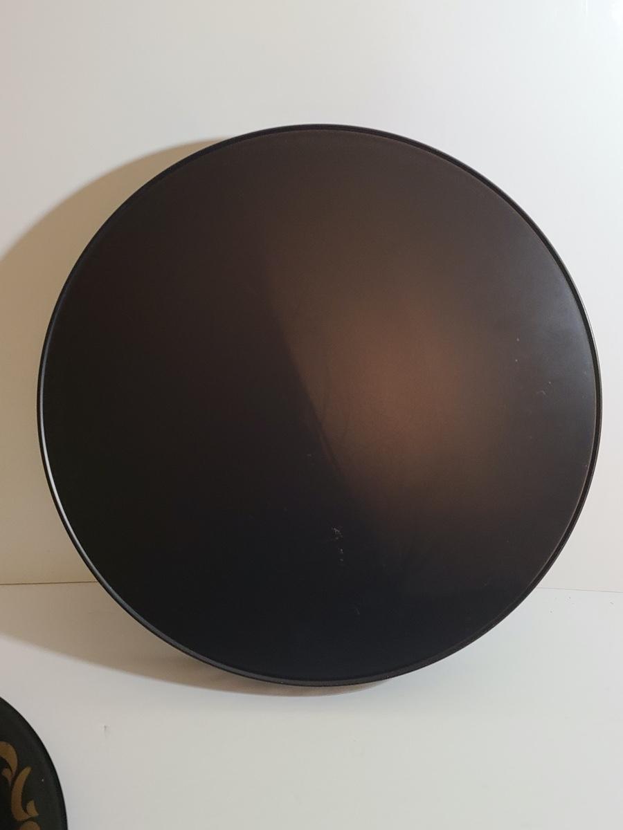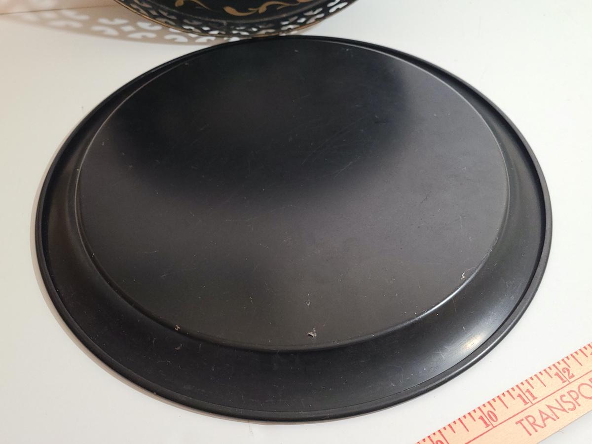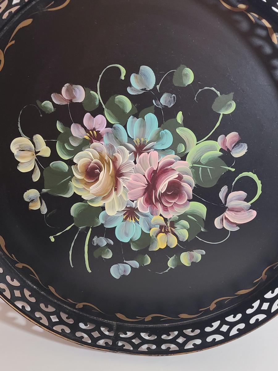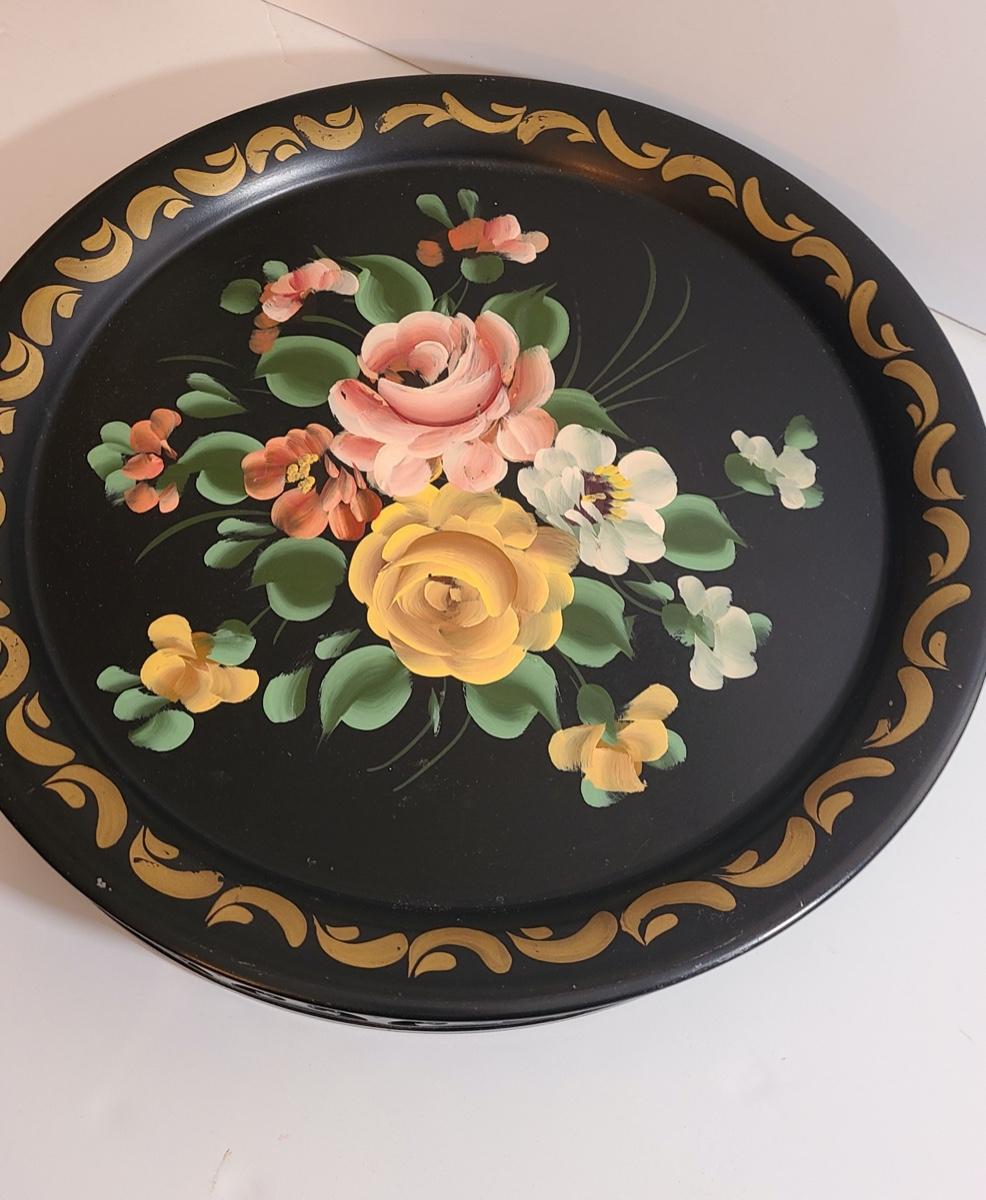 Two lovely hand painted metal trays. One is flatter, and the other has sides. These are perfect for tea-service, to use as a coffee table tray, or beverage tray. All Holiday items in this auction are as-seen. The client collected a lot of holiday pieces and some are new in box, some were displayed once and come with original box, and some have been displayed and come with no box. They are all pre-owned in some fashion and have been stored in an attic or on shelf in library. Please see all pictures. The pictures show condition, measurements if taken, and what is included in the lot. Due to the large amount that we photograph and the time frame, we are not always able to take measurements. All items unless noted, are pre-owned and have been used. Thank you