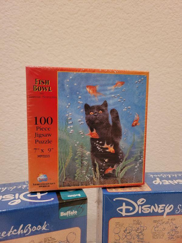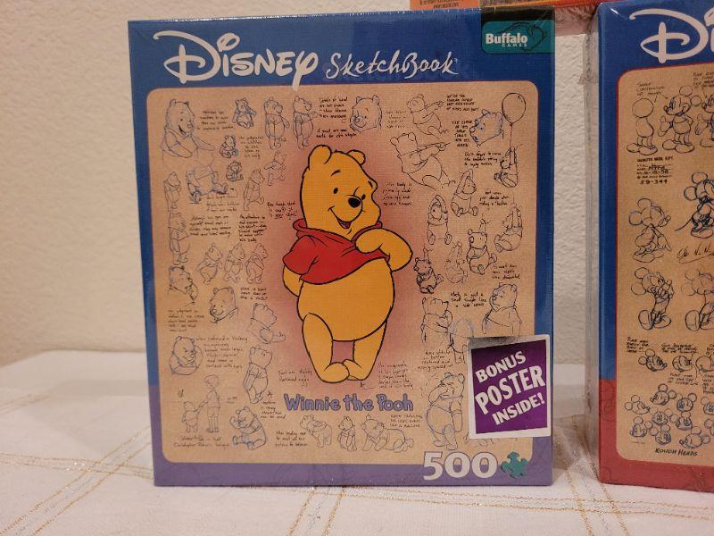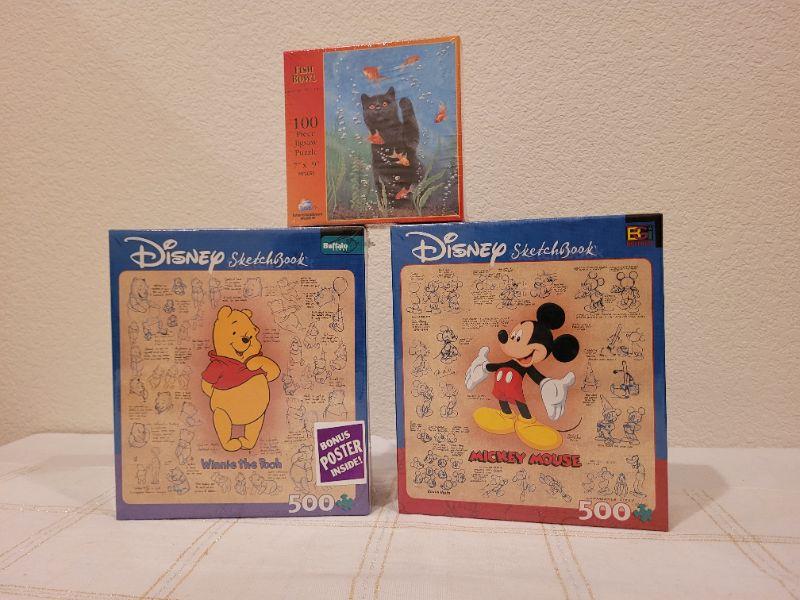 Lot 653: Mickey and Pooh NEW Puzzles 500 pc + 100 pc New Cat Puzzle