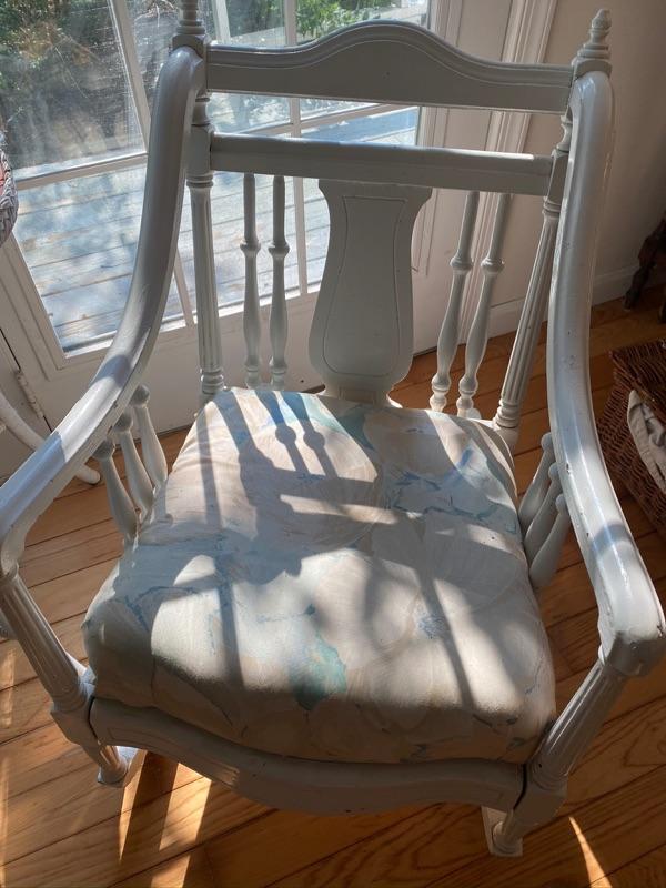 Lot # 654 Antique Wicker Table, Rocker, Artwork