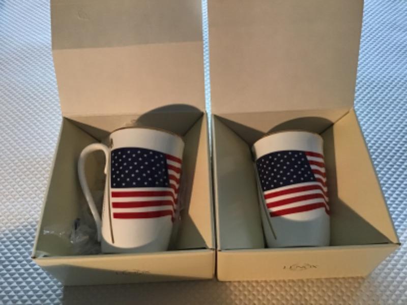 A Pair of LENOX American Flag Mugs, in Original Boxes