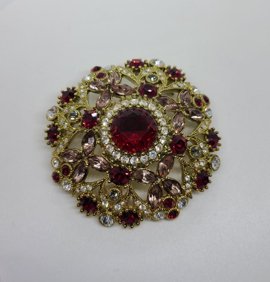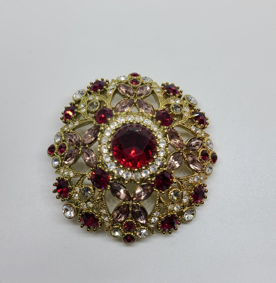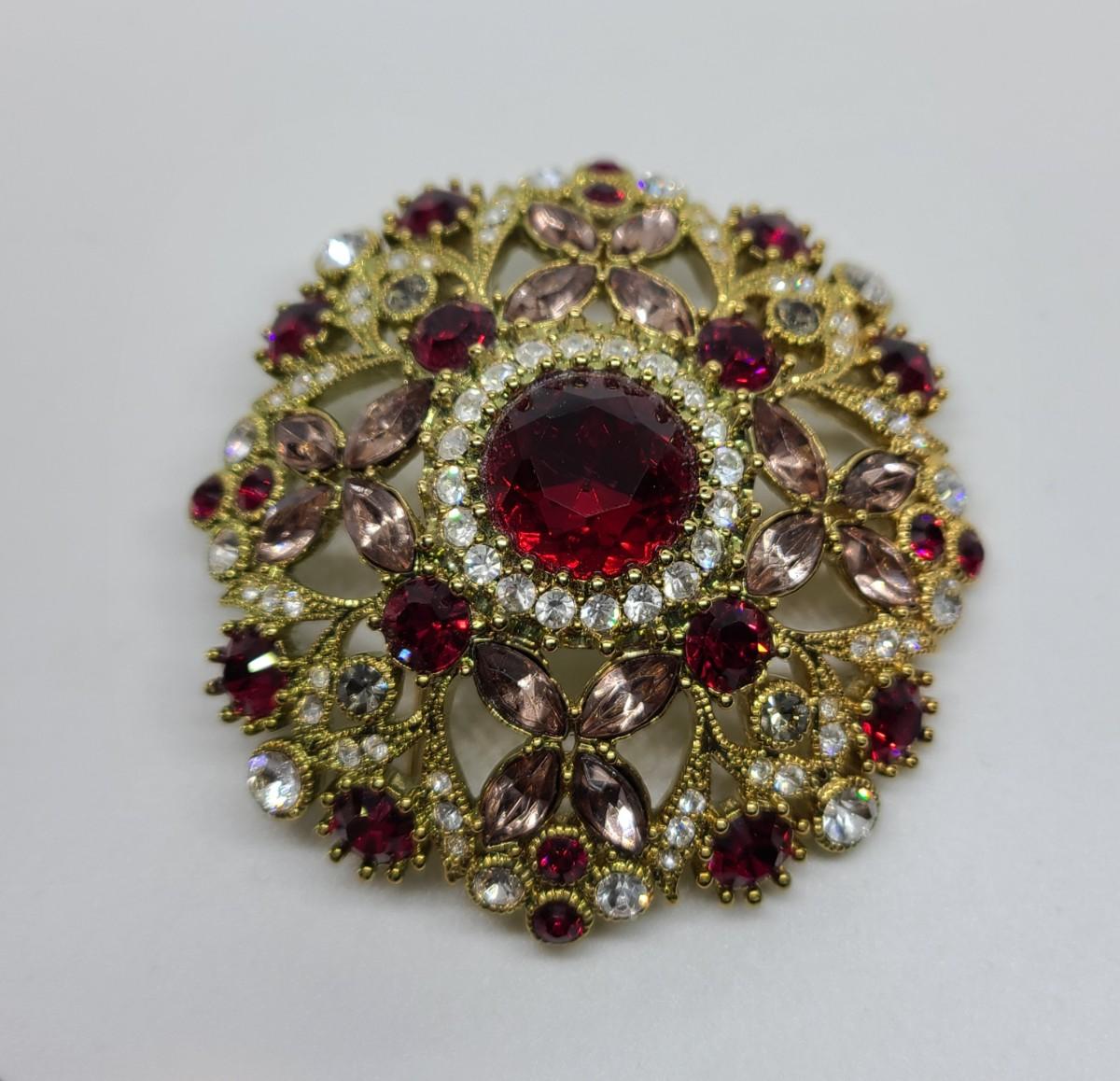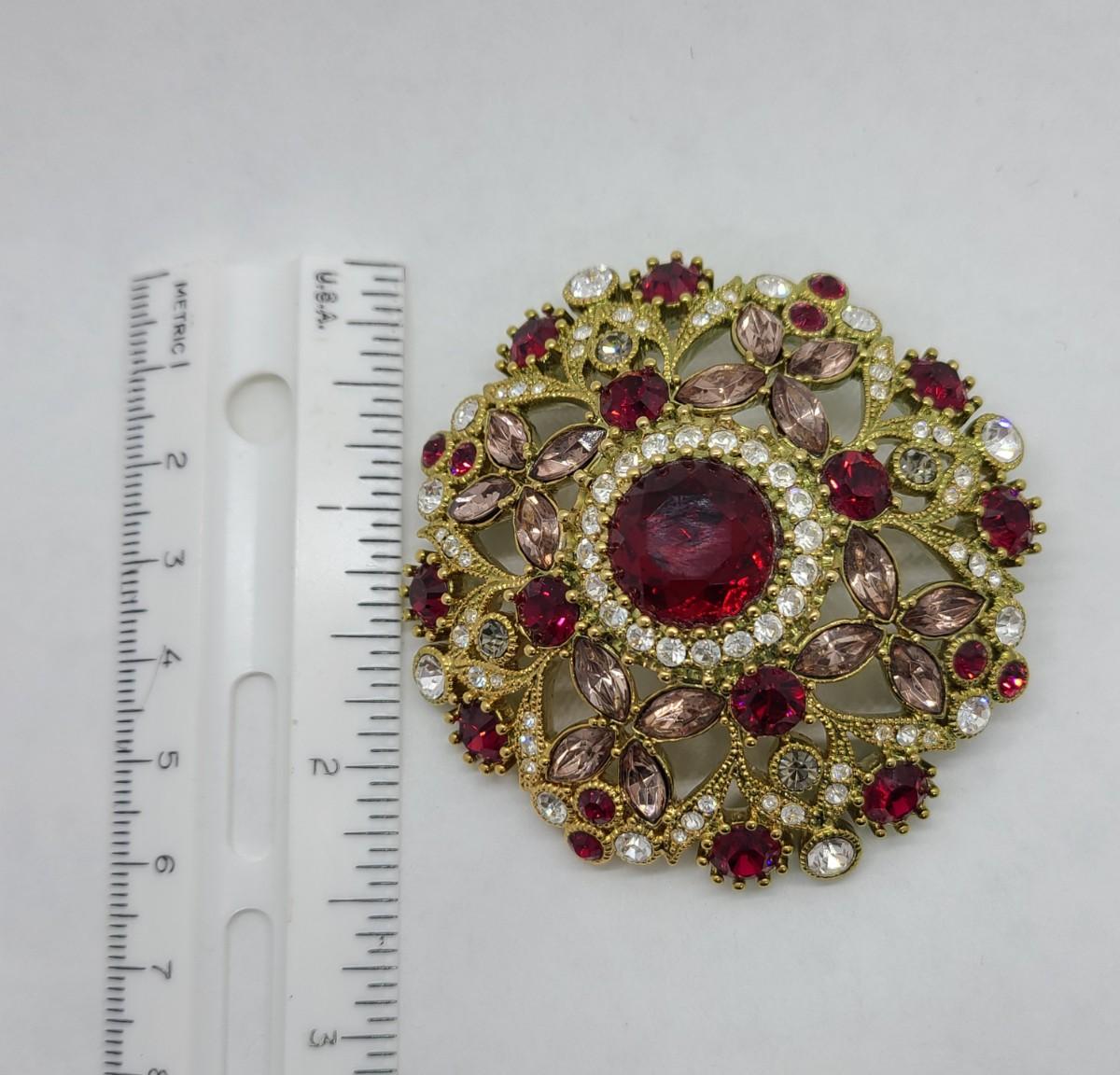 Lot 27: New Joan Rivers Red & Clear, Pink Crystal Magnificent Brooch