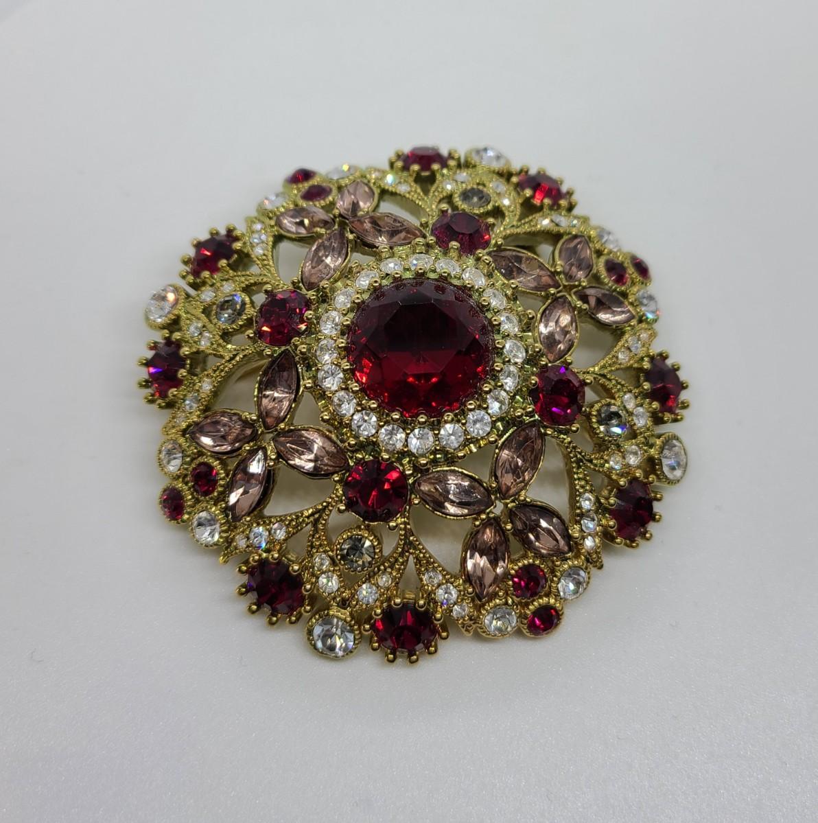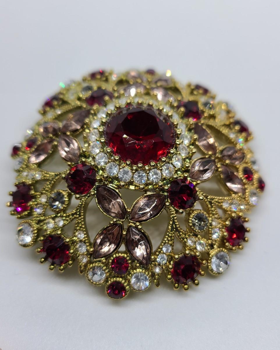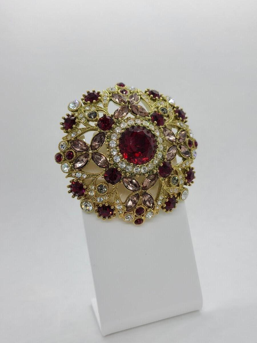 Lot 27: New Joan Rivers Red & Clear, Pink Crystal Magnificent Brooch