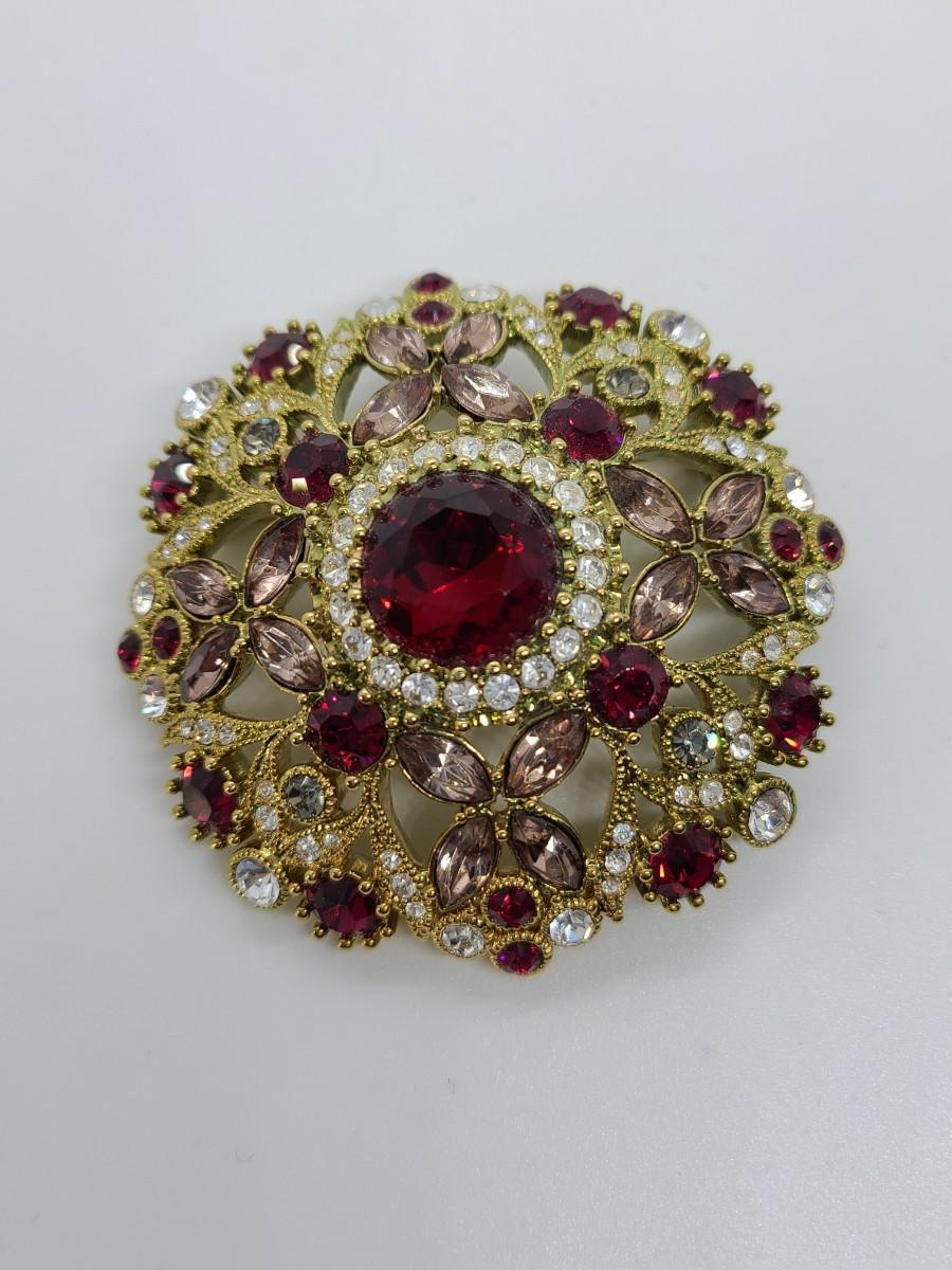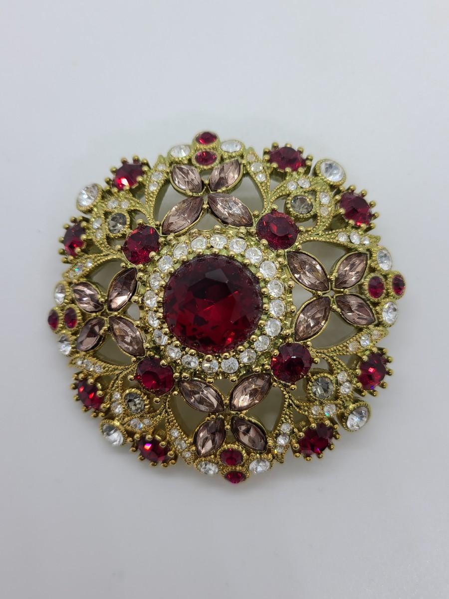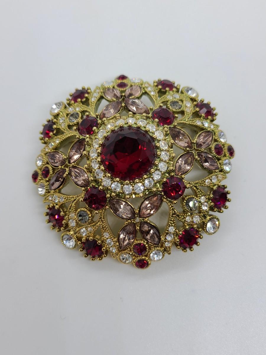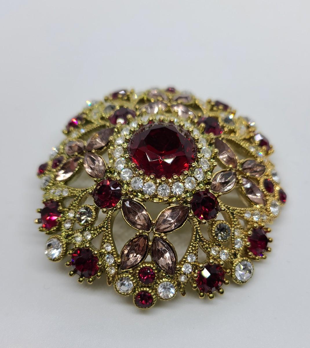 Lot 27: New Joan Rivers Red & Clear, Pink Crystal Magnificent Brooch