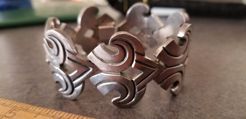 LOT #658: Vintage TAXCO 7" Signed RANCHO ALEGRE Sterling Silver Bracelet