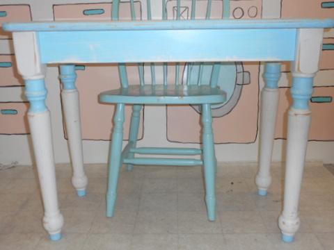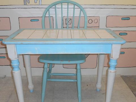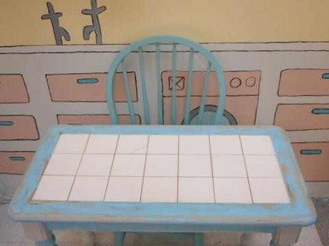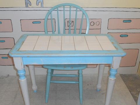 Lot 659 - Vintage Shabby Chic Tile Top Table & Wooden Chair