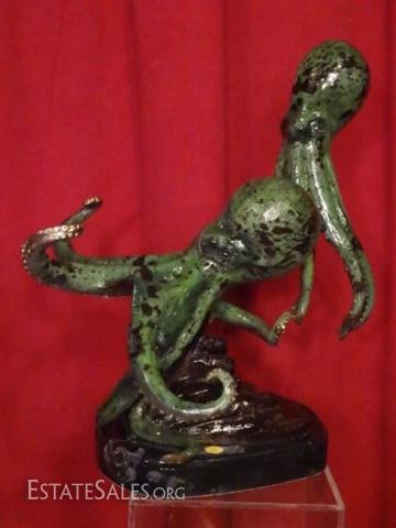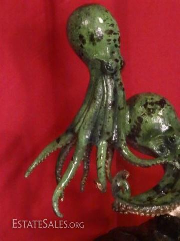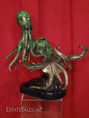 LOT 65B: LARGE PATINATED BRONZE SCULPTURE, 2 OCTOPUSES, ON MARBLE BASE