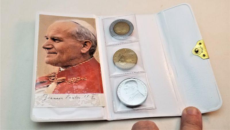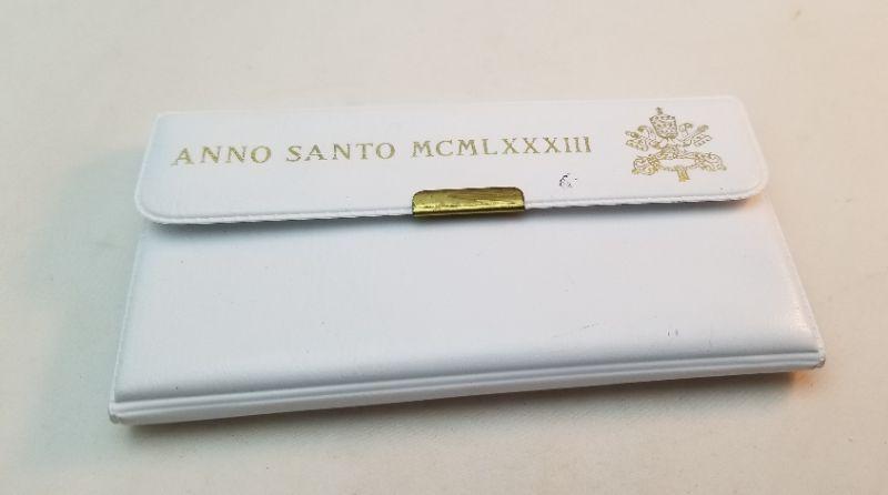1983 Set of Vatican coins in white leatherette case. Features the man who was Pontiff at the time, Pope John Paul II, now SAINT John Paul II. Case measures 4.5" x 2.5".