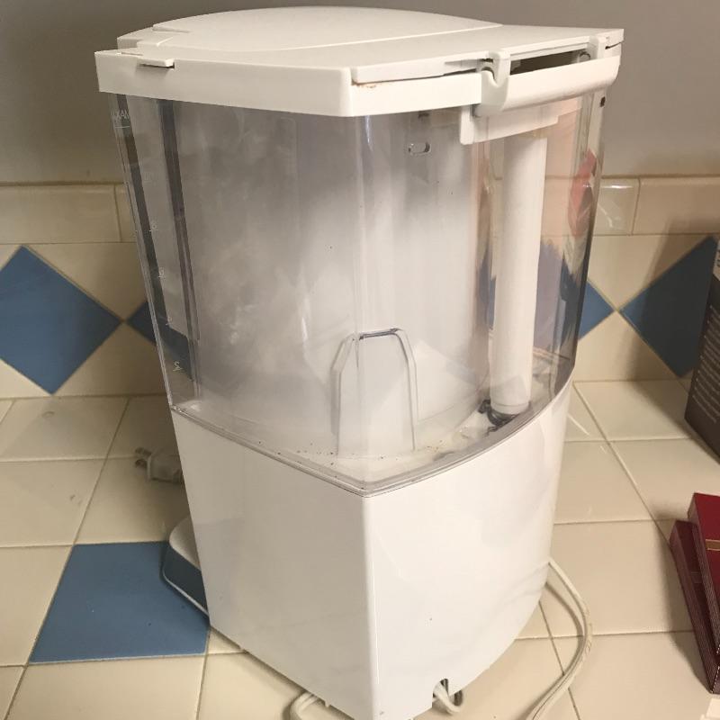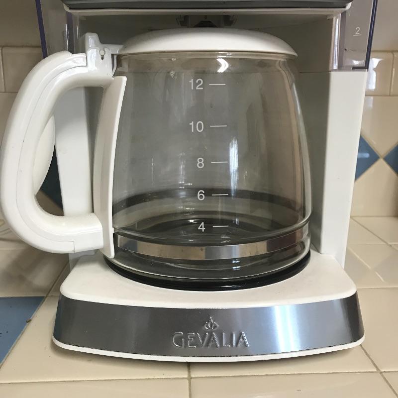 Twelve cup Gevalia coffee maker with all the bells and whistles including three unopened packs of 30 filters, four Cleancaf packages with three packages each. Gevalia is programmable and has a clear reservoir to ease your mind. For your freshest cup, we’ve also included a Krups “Touch-Top” coffee mill. Both appliances turn on when plugged in. See photos. No shipping.