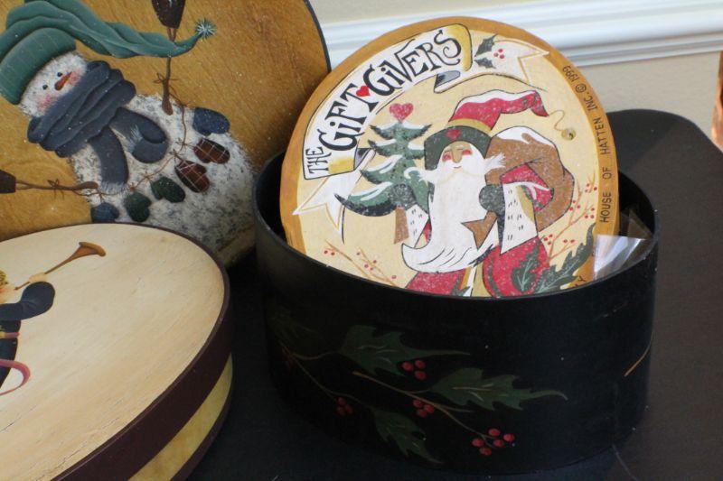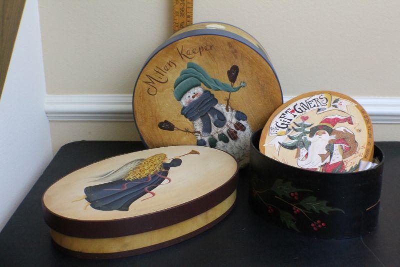LOT #66: (3) Assorted Wood Holiday themed Handmade Storage Boxes