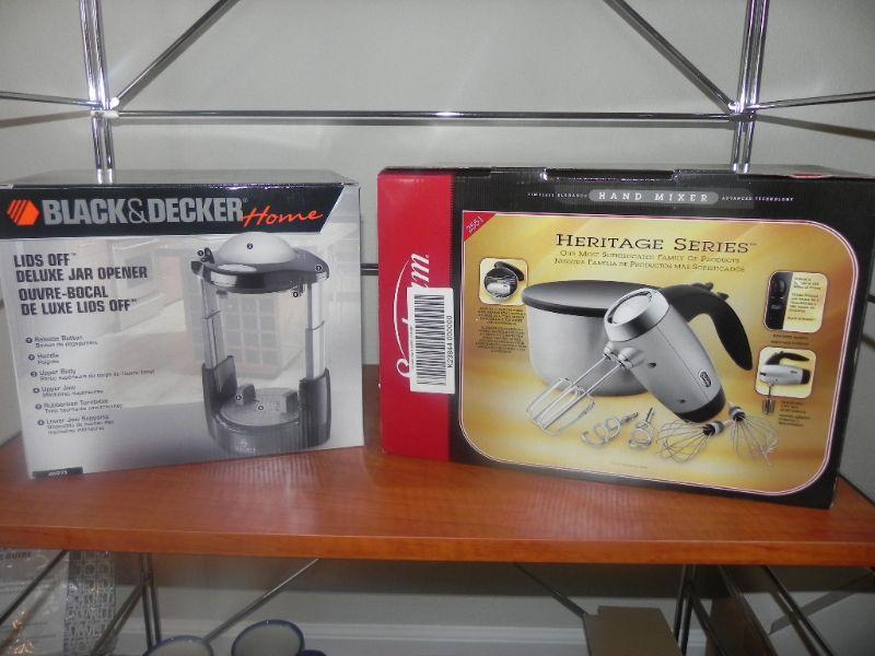 HERITAGE SERIES HAND MIXER MODEL 2551 AND BLACK & DECKER LIDS OFF JAR OPENER MODEL JW275. BOTH NEW