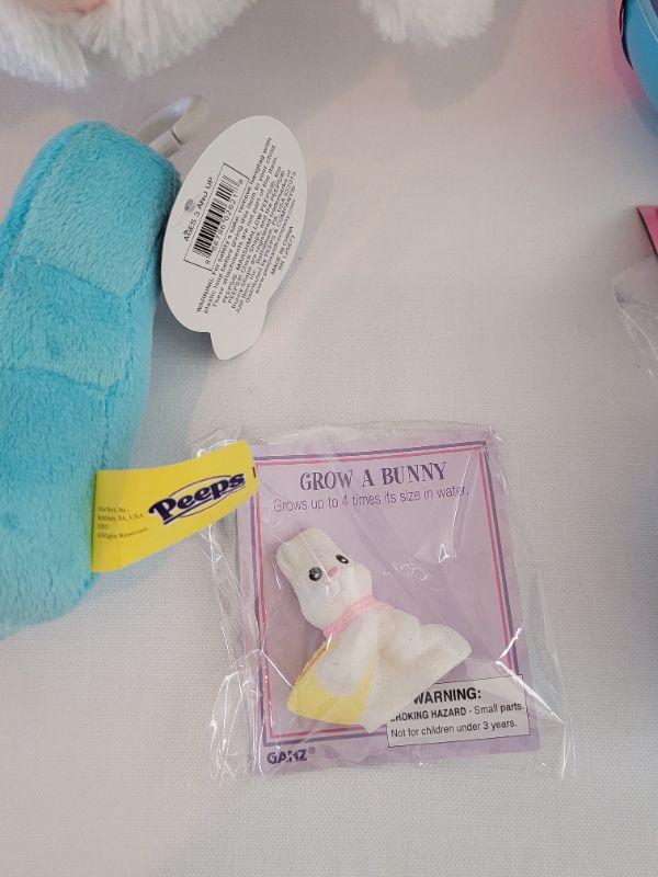 Lot 66: New Bunny Easter Basket with Peeps Gels & Clip On Plushie, Bubbles, Silly Putty and Ganz Grow a Bunny