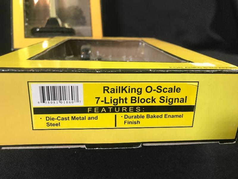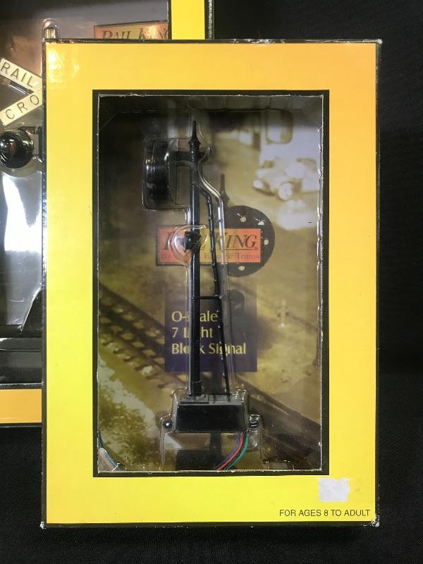 MTH Rail King O/O-27 Operating 154 highway crossing signal #30-1074, and a 7 light block signal. Please see all pictures for content of the lot, condition of the lot, and measurements if taken. Pictures are the best representation of the items listed and items are untested unless indicated in description. Thank you for looking and have fun bidding!