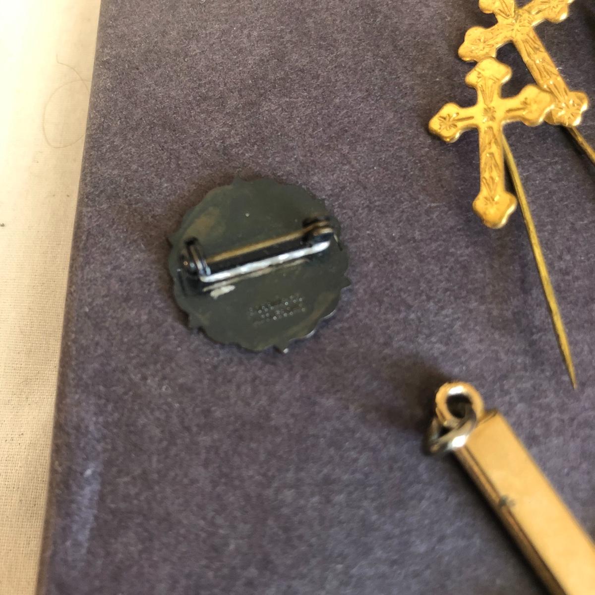 A great assortment of necklaces, pins and pendants and a brooch in this lot. The necklace in the last 2 images has a 925 chain. No other metal quality markings found on any items. A couple of the chains have some tangles in them.