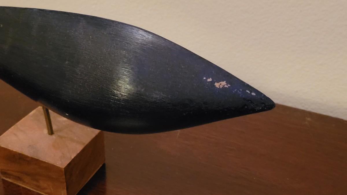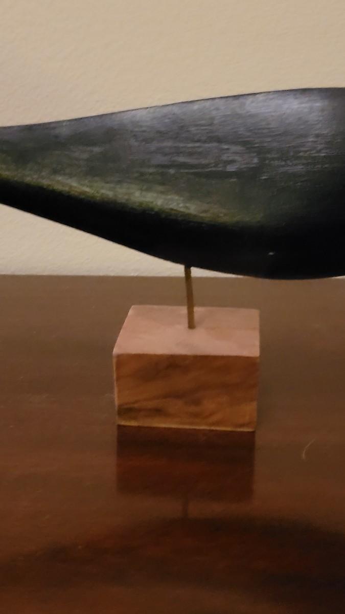 The wood is walnut. The fish is dark blue.