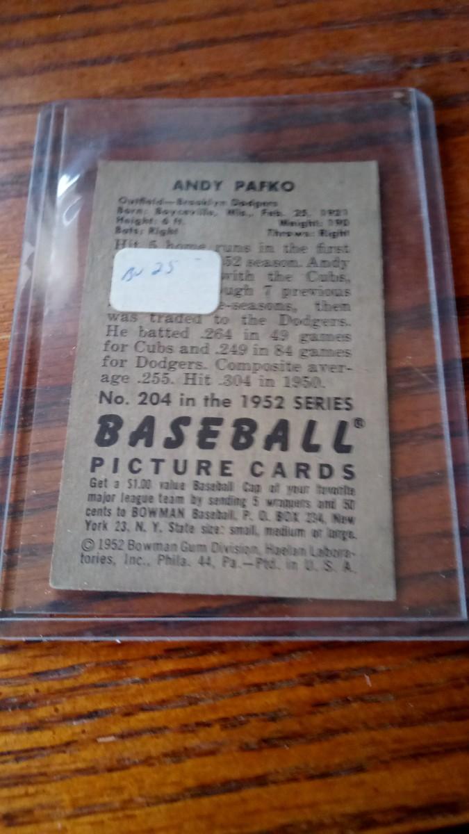 LOT 66 OLD ANDY PAFKO BASEBALL CARD