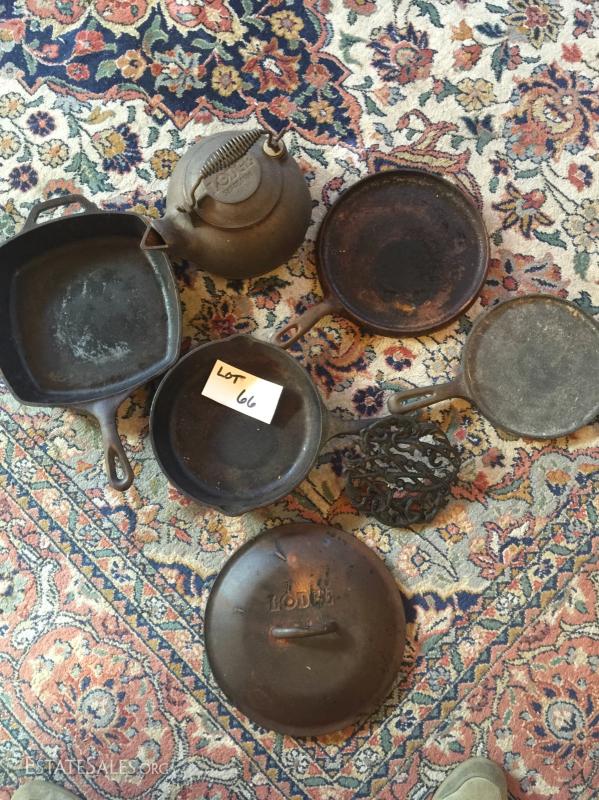 Lot 66  - 7 Cast iron pieces, lodge and estrella.