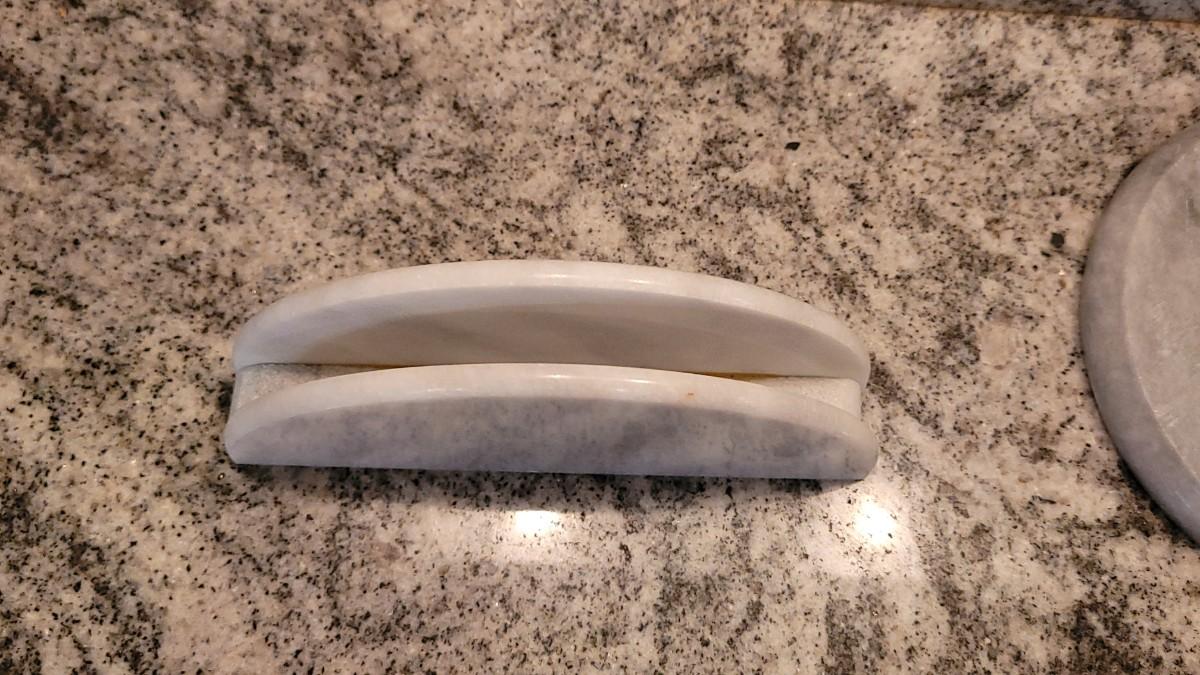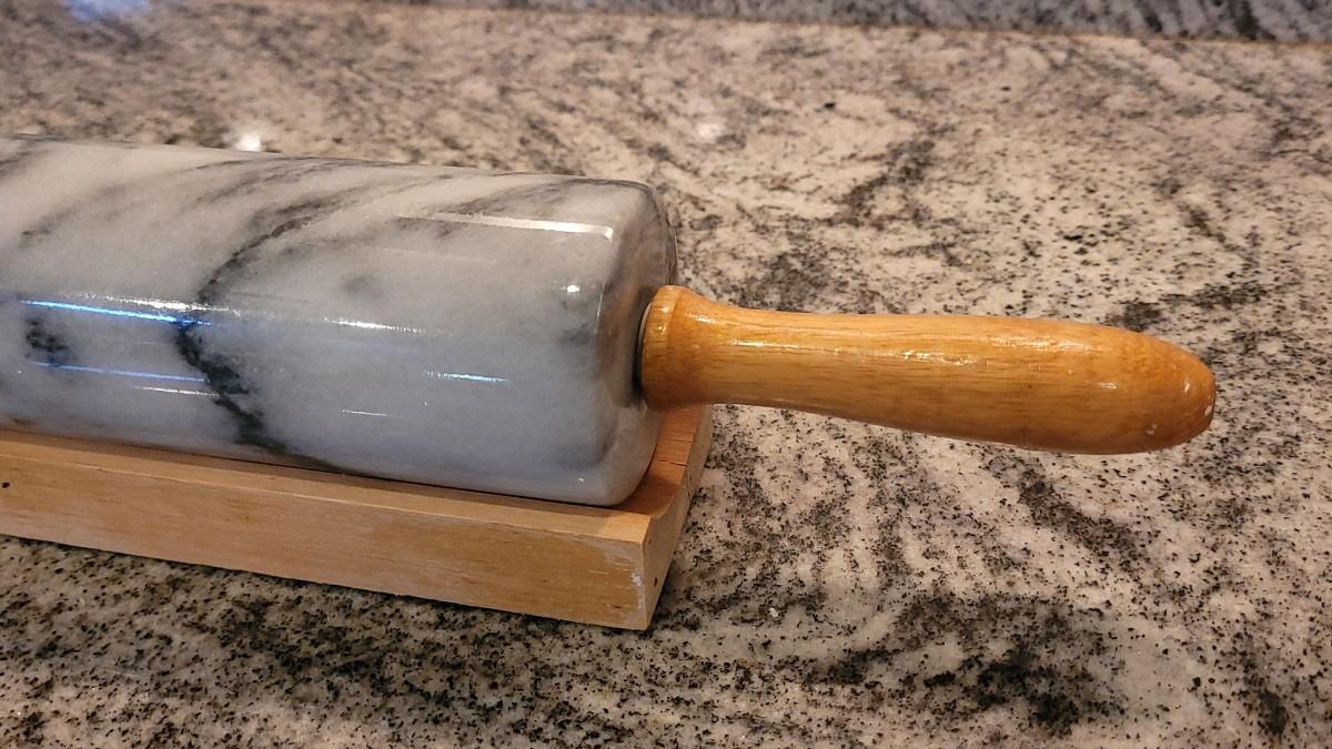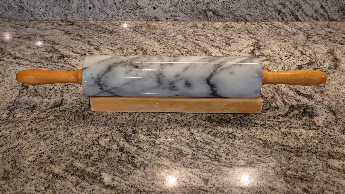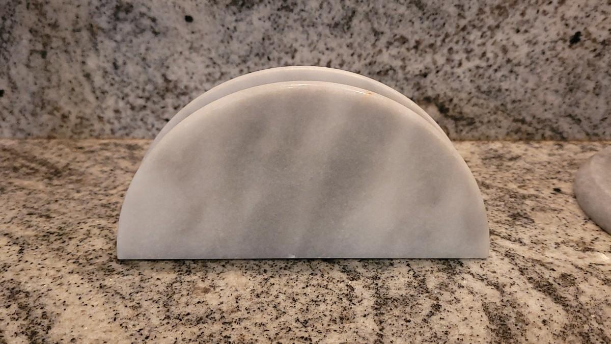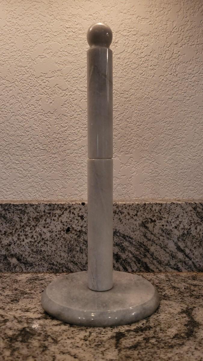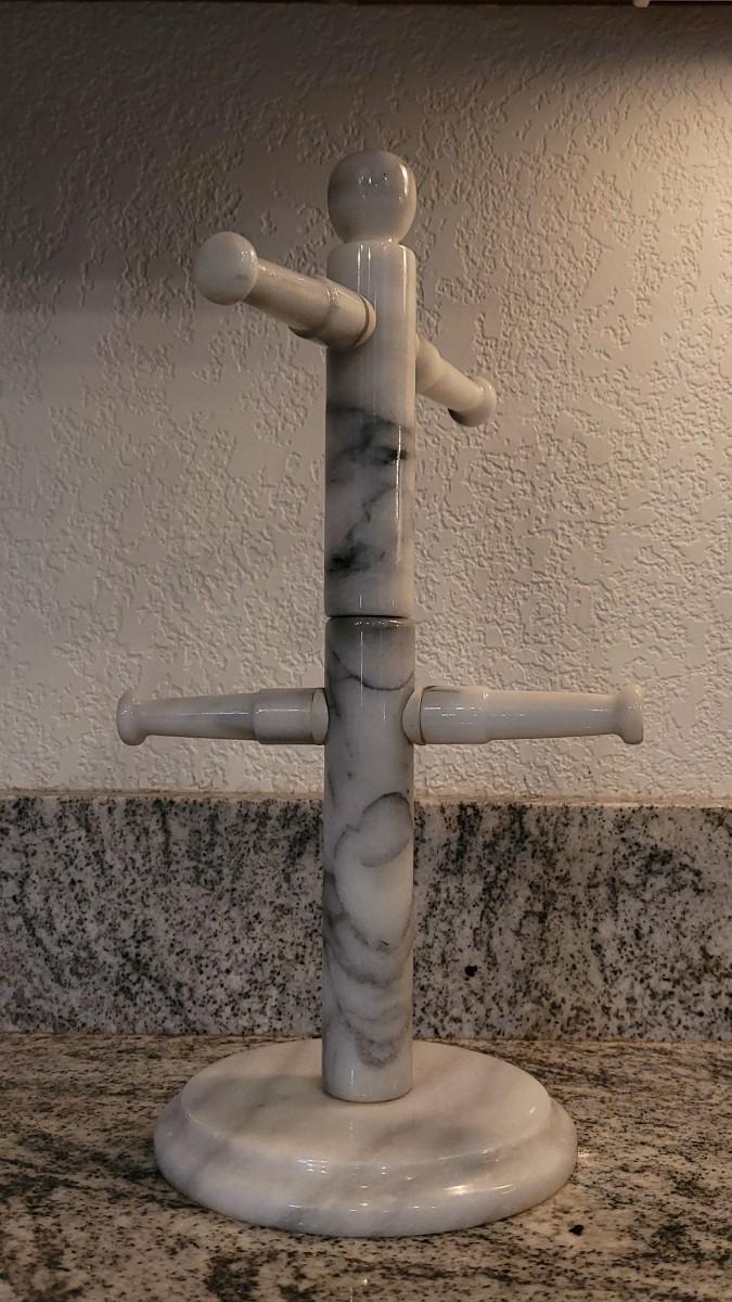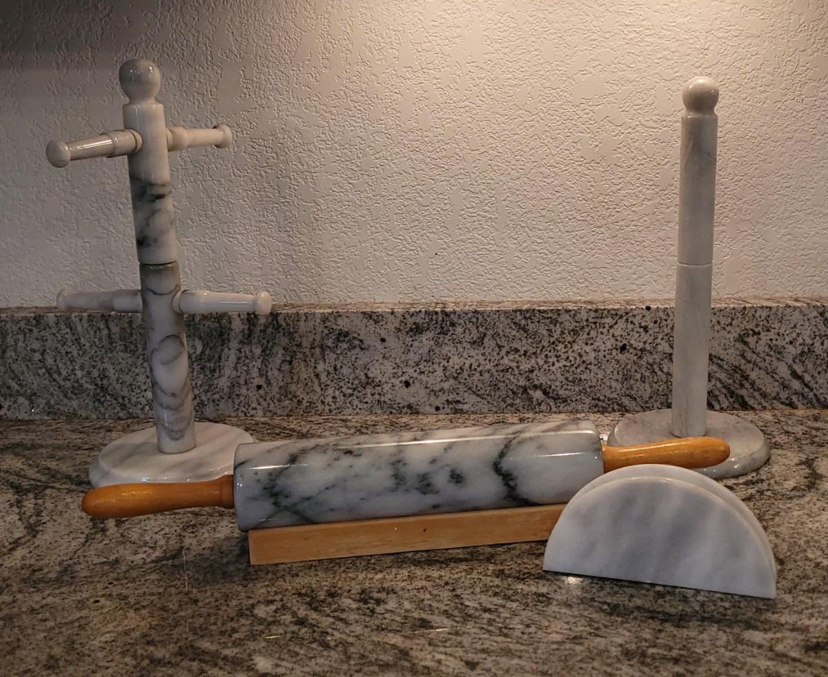 Lot 66: Vintage Marble Coffee Cup Holder, Paper Towel Holder, Napkin Holder and Rolling Pin with Wood Holder