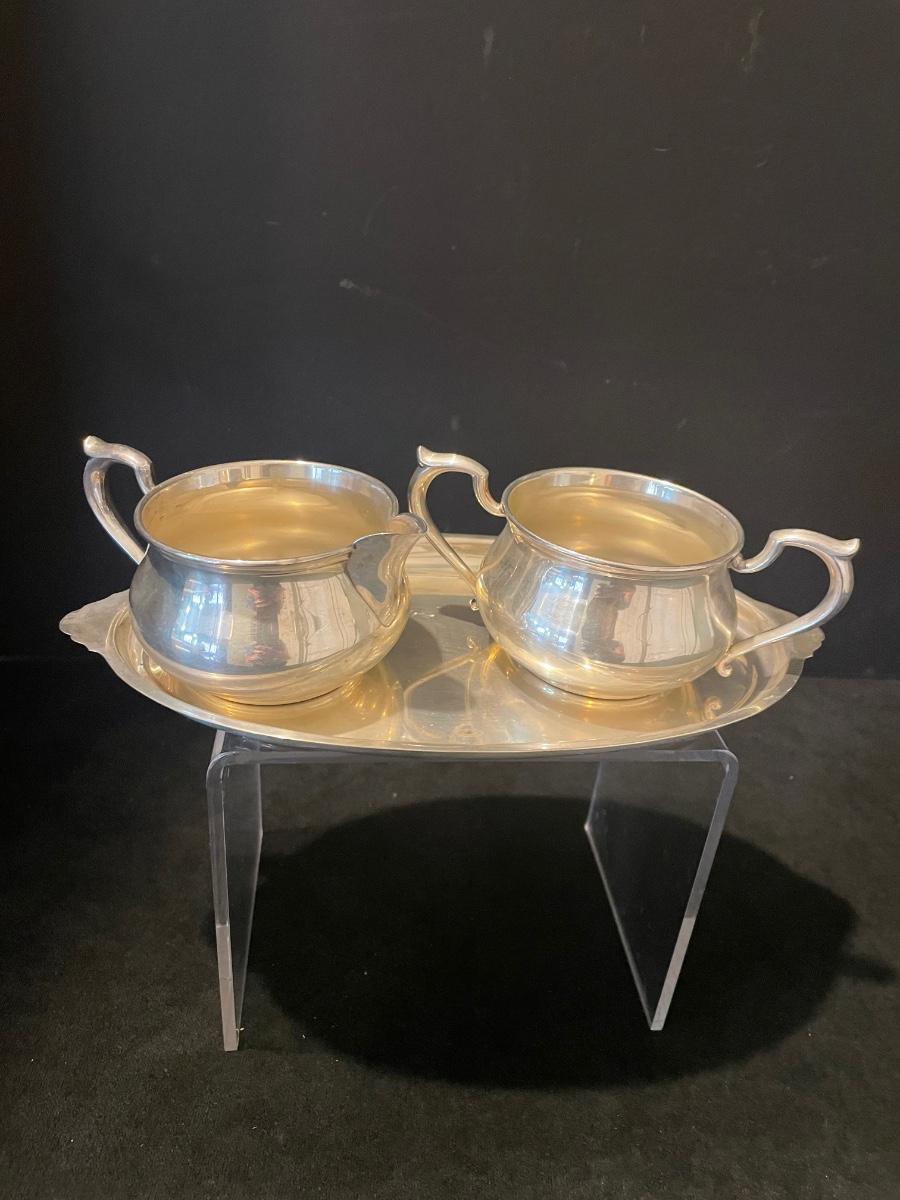 Vintage S. Kirk & Son Sterling silver sugar dish, creamer and tray.
