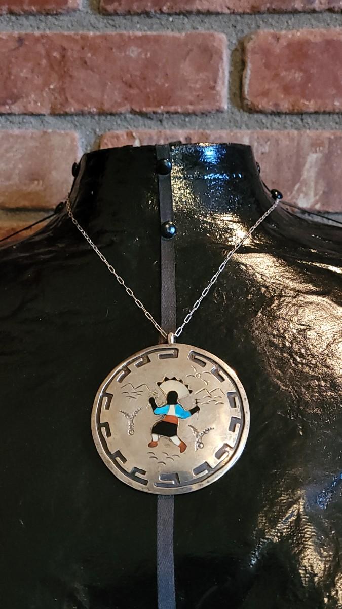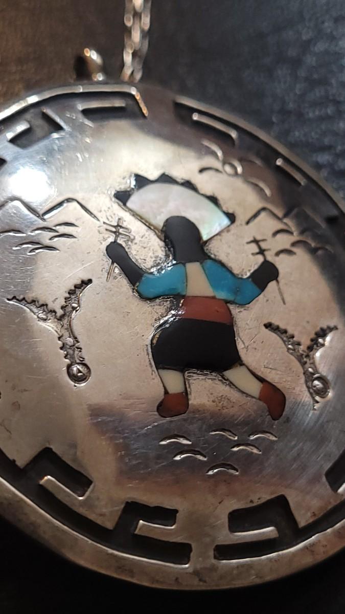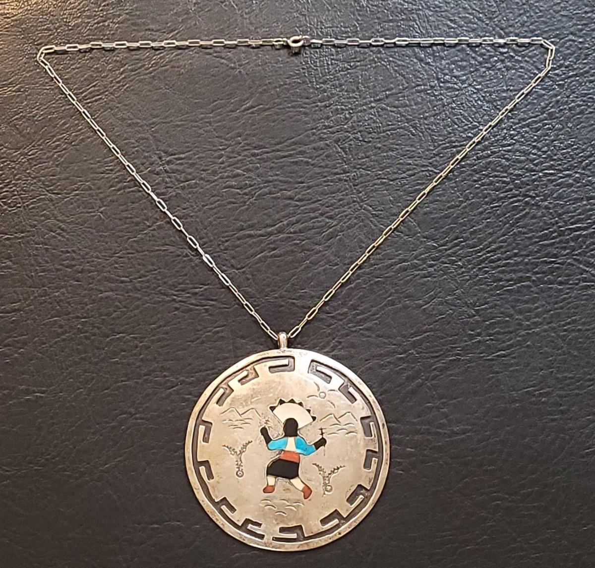 Lot 66: Zuni Inlay Medallion Pendant with Handmade Link Chain Necklace