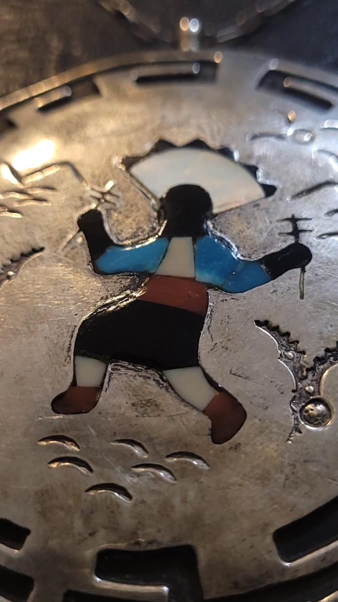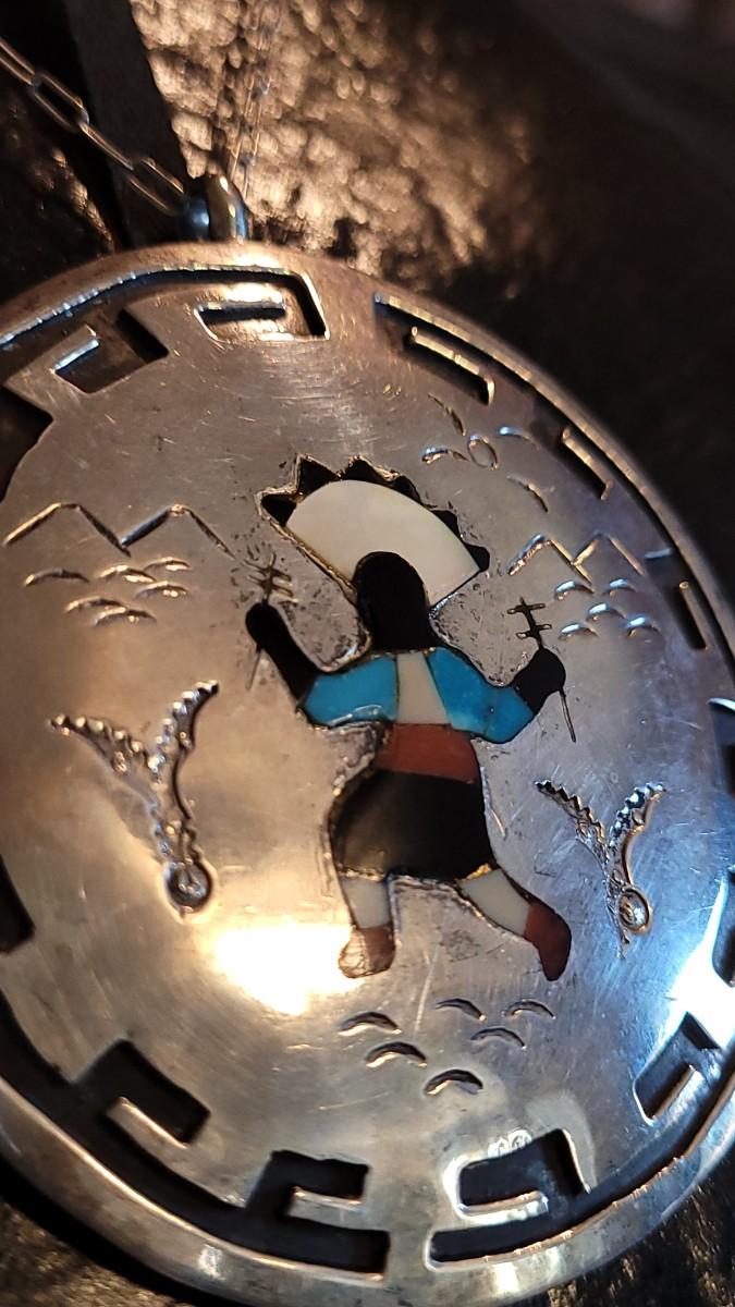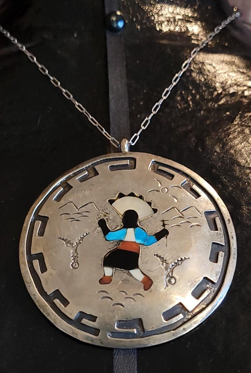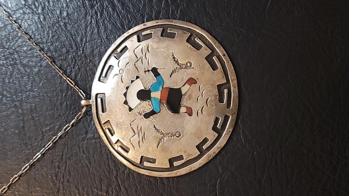 Lot 66: Zuni Inlay Medallion Pendant with Handmade Link Chain Necklace