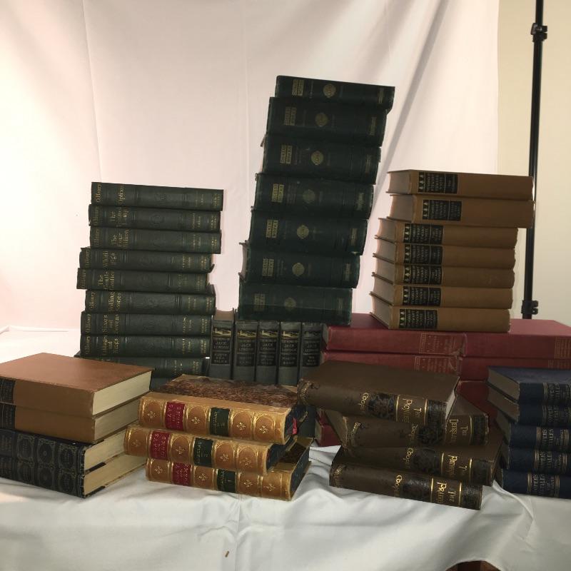 This is a great array of mostly antique literary classics that also have a traditional look perfect for your living room or office. Collection includes authors Dickens, Defoe, Cooper, Dumas, Stevenson, three vile Essays & Poem by Macaulay and more. Get the feel of the pages turning with your fingers that you won’t get with a electronic device.
