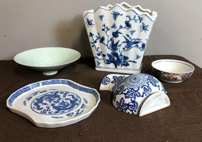 Lot# 66 Asian Blue Willow Style Pottery - 5 pieces