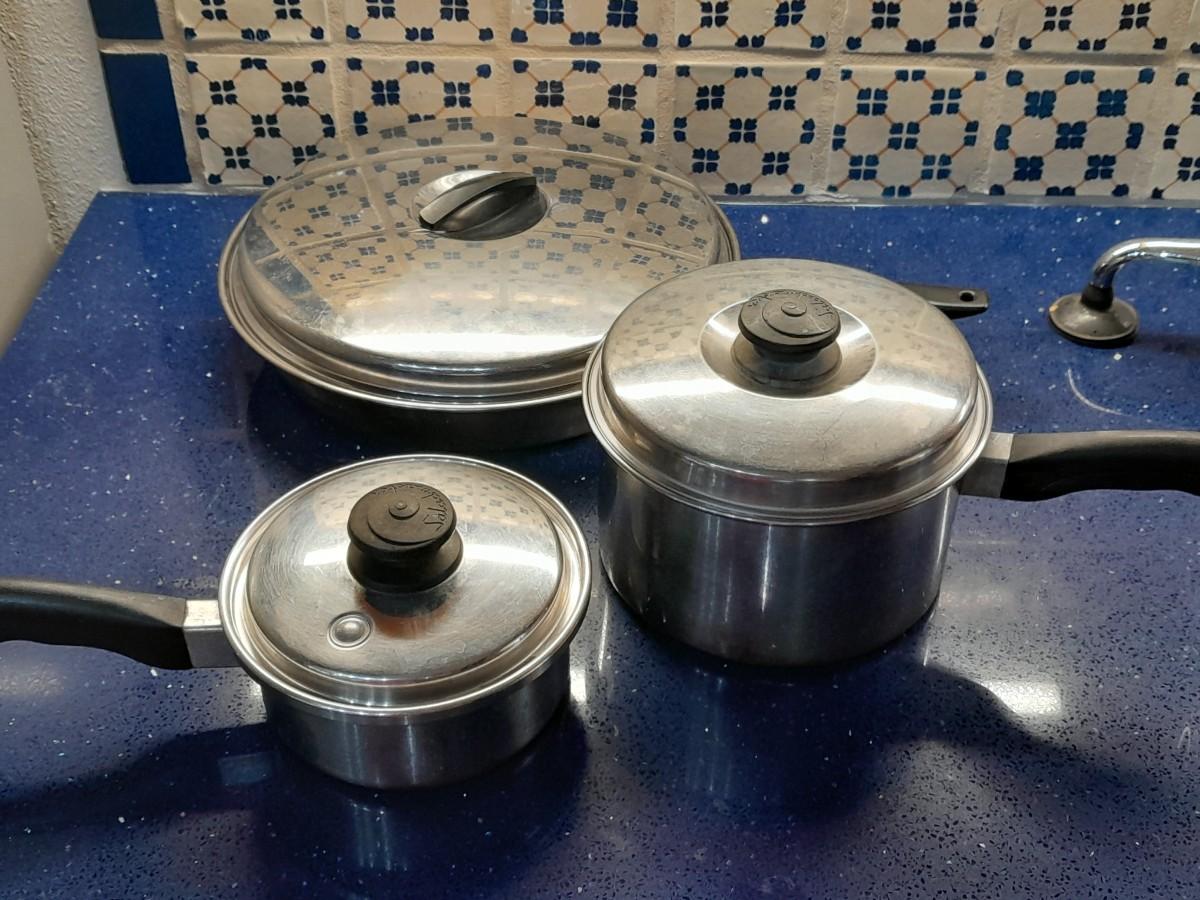 ASSORTMENT OF STAINLESS COOKWARE WITH LIDS