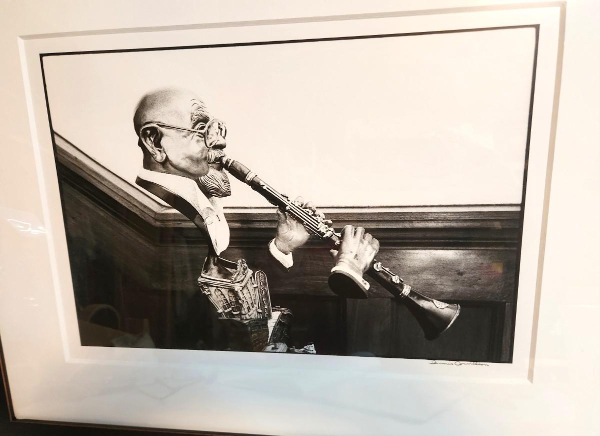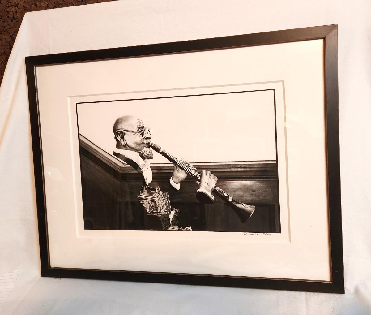 Black and White study of Pete with his clarinet by artist Dennis Couvillon - pencil signed - 2007. Measures 25" wide, 19.5" tall - a handsome piece. Well framed - good condition.