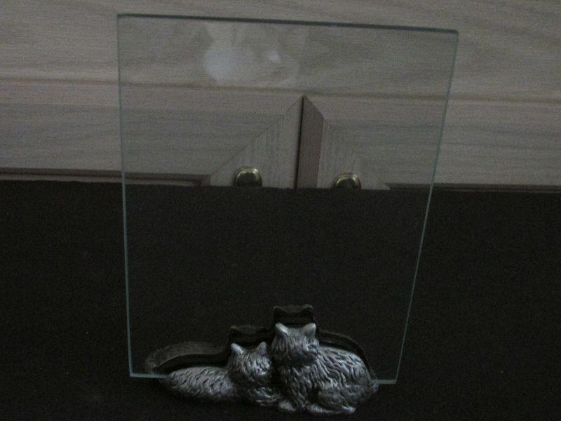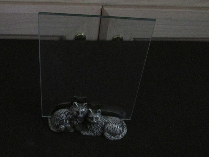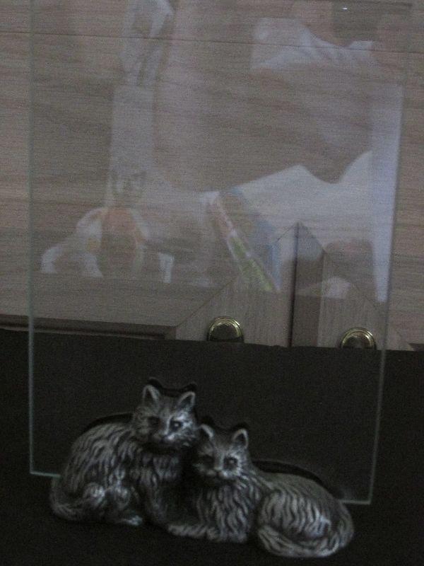 Cat Picture Base. Pewter Cats base on bottom of glass frame.