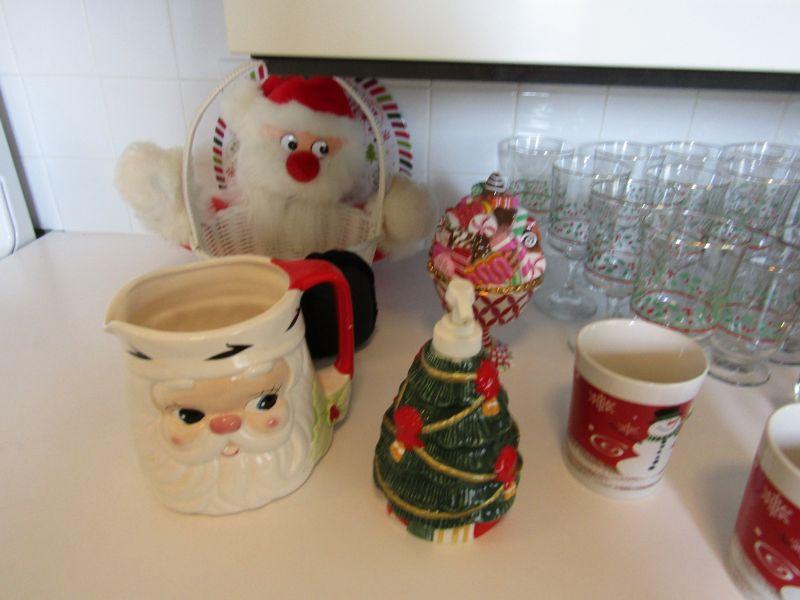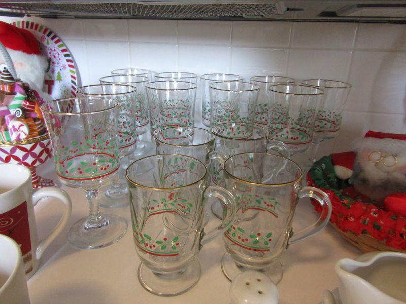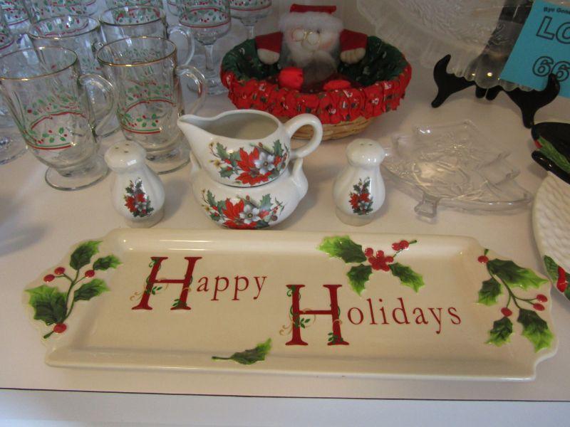 DRINKING GLASSES, LOTION DISPENSER, GLASS PLATTER, SALT & PEPPER SHAKERS, COFFEE MUGS, CREAM & SUGAR, HAPPY HOLIDAY PLATTER AND MORE