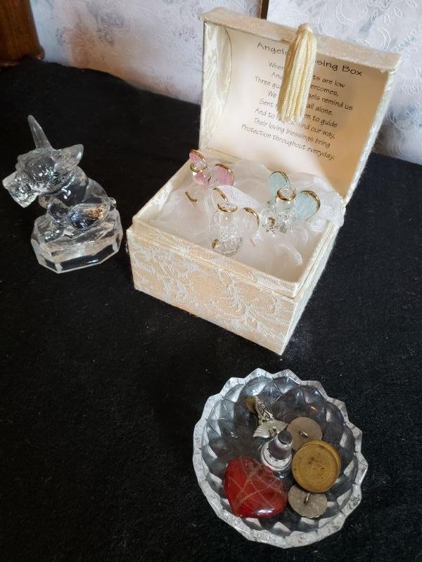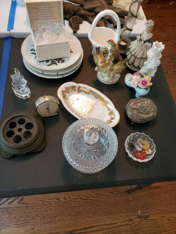Music box with angels, decorative plates, crystal candy dish with lid, and more, Move from second floor.