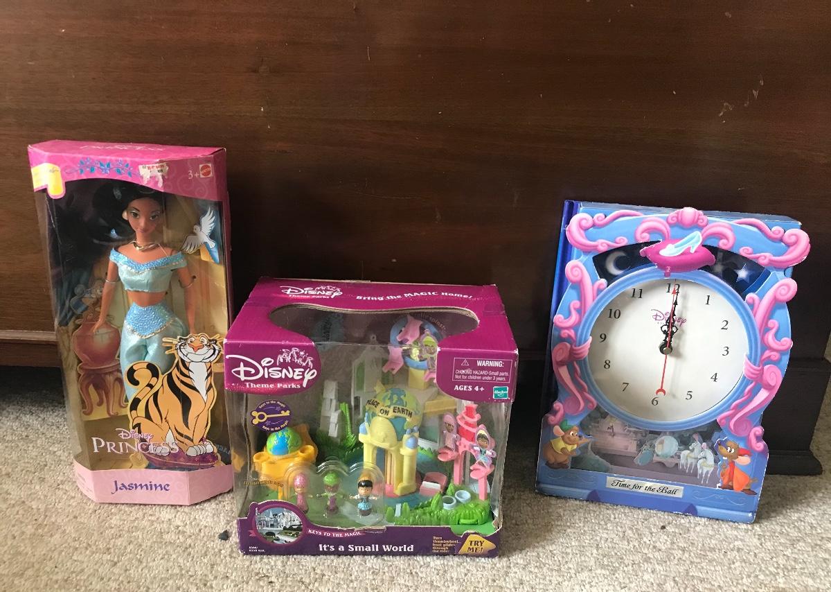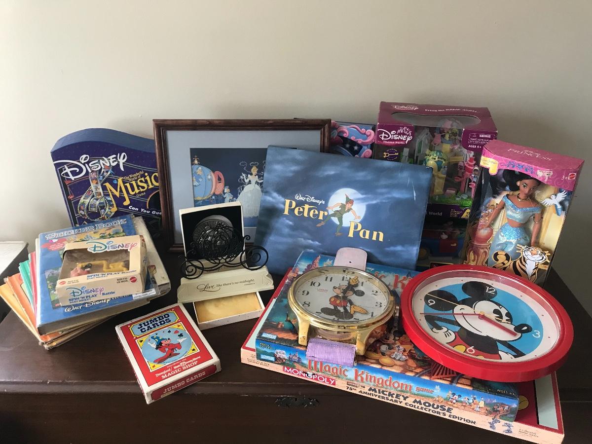 Games, clocks, jumbo playing cards, Small World Castle, Jasmine doll, lithographs, books, and more. Please see all pictures for content of the lot, condition of the lot, and measurements if taken. Pictures are the best representation of the items listed and items are untested unless indicated in description. Thank you for looking and have fun bidding!