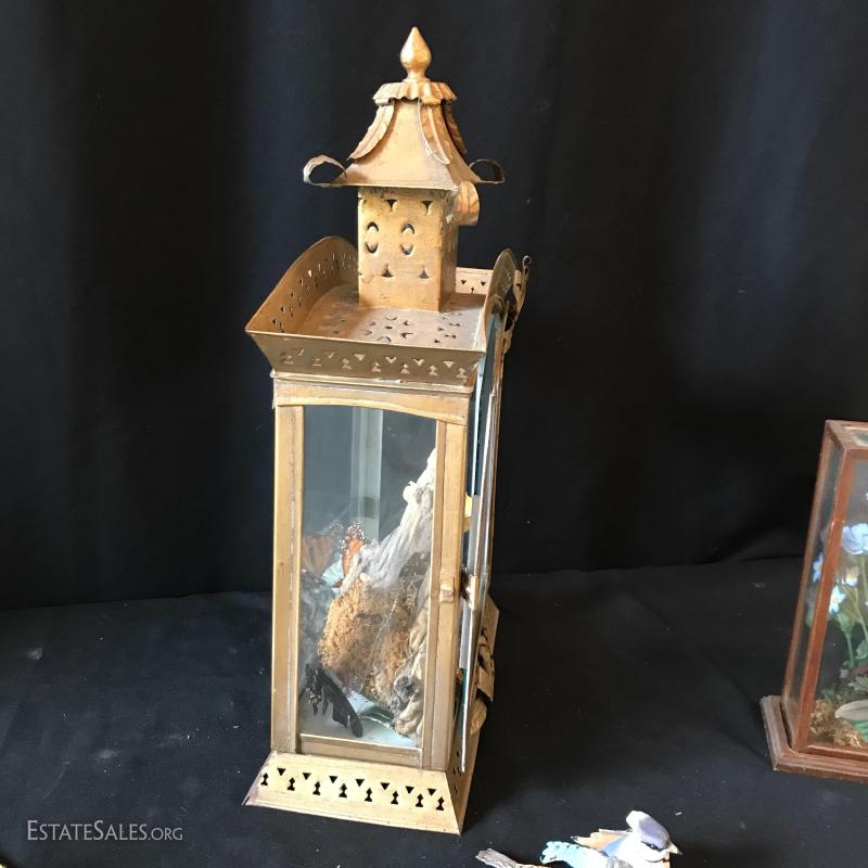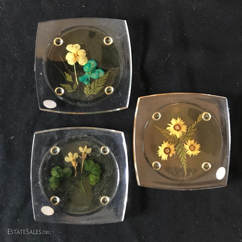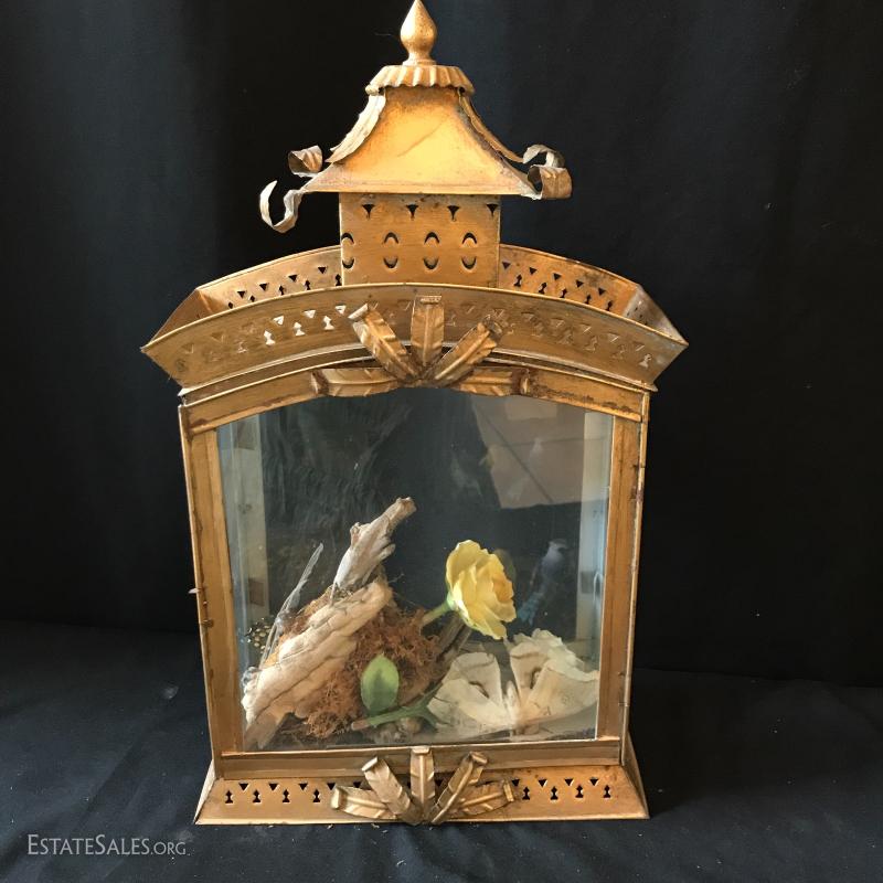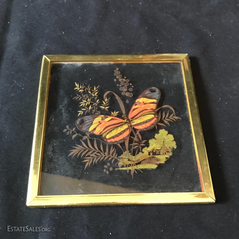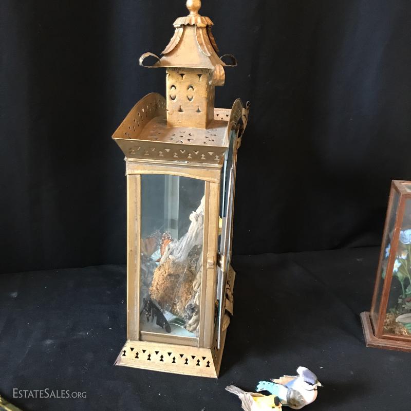 Two beautiful display boxes with flowers and butterflies inside. Make great unique decorative pieces. Larger one needs some rearranging inside. Has door that opens for easy access, 11"l x 5"w x 19"tall. Smaller box is 7.5"l x 2.5"w x 9" tall. No opening. Also includes 3 dried flower coasters, butterfly glass tile and two decorative birds.