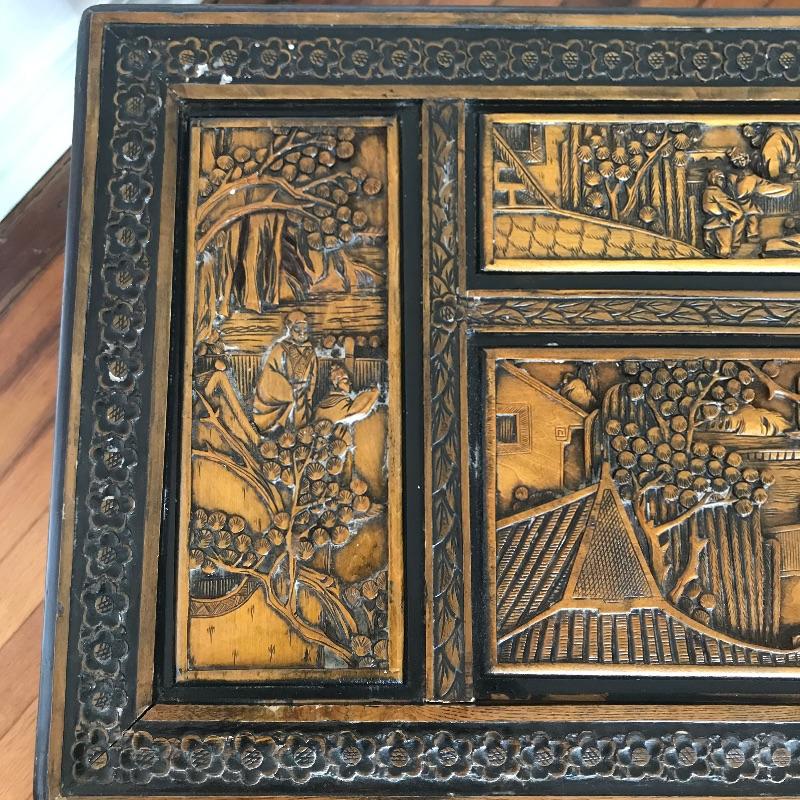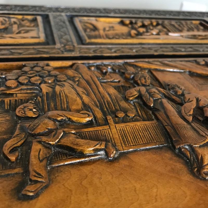 Lot 66 - Glass Topped Wooden Relief Trunk