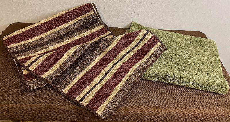 Lot #66 Green Bath Matt and 1 Stripped Runner