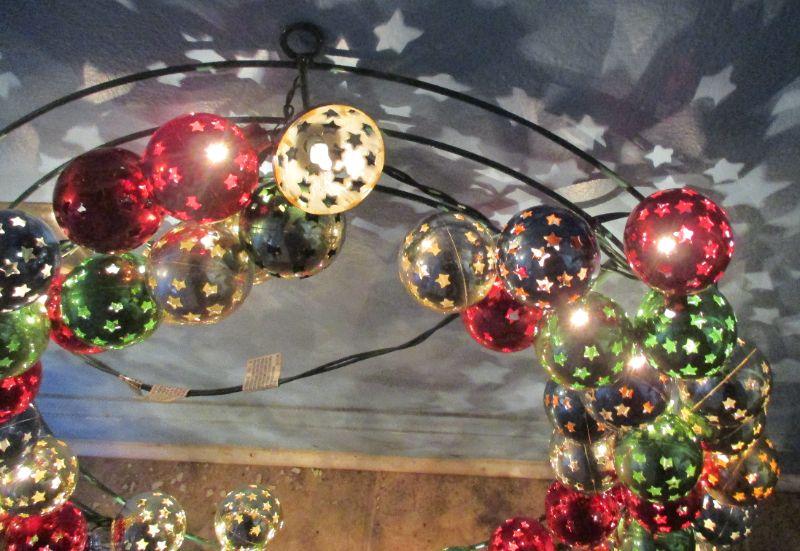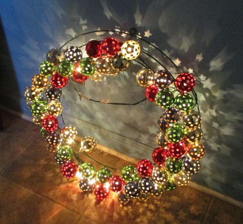There is a spot that has some missing bulbs, but it still lights up and is pretty. About 24" in diameter.