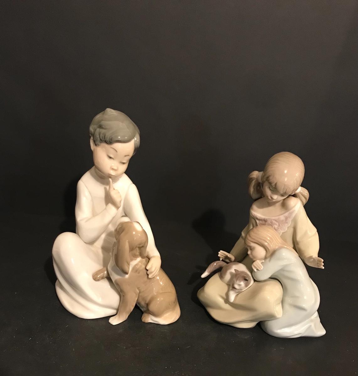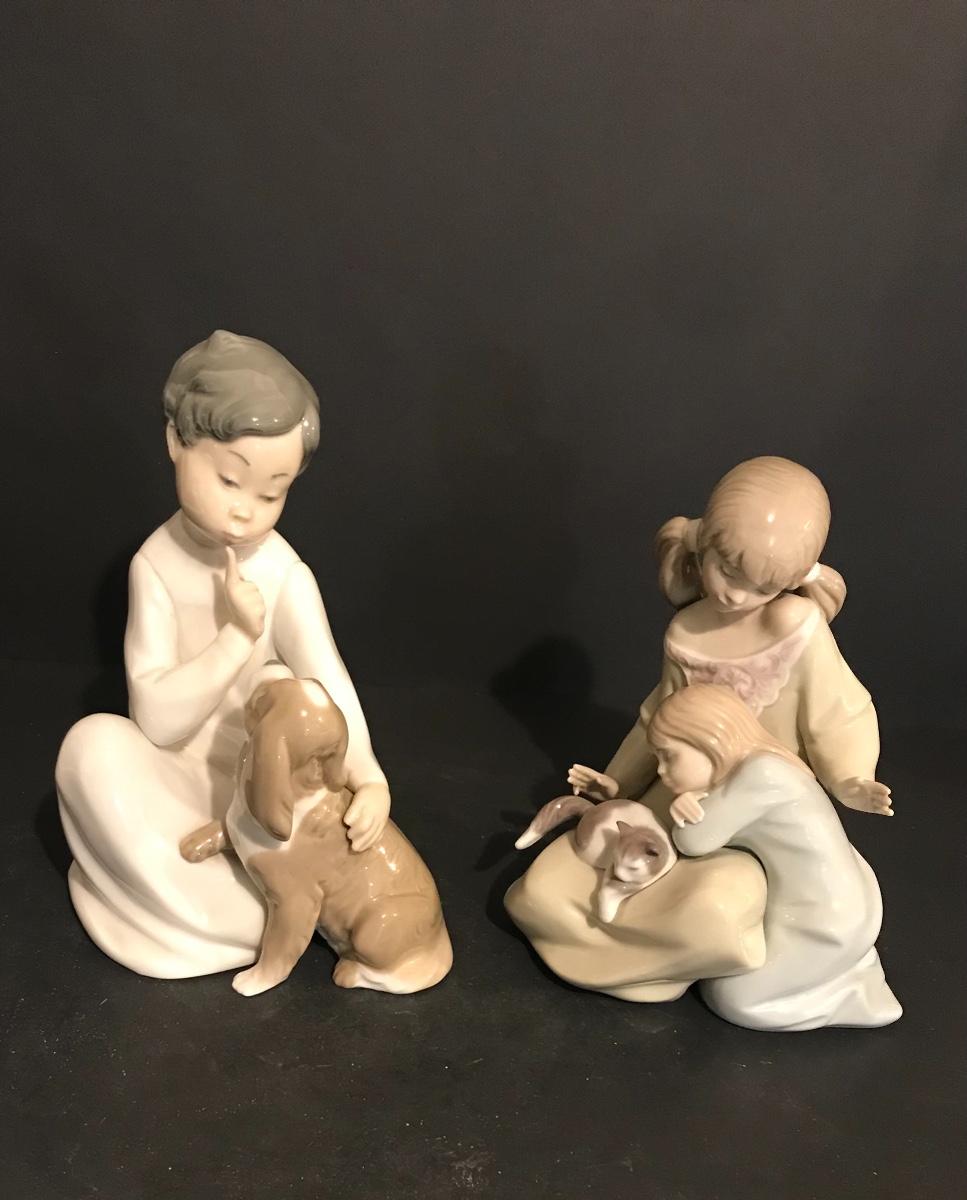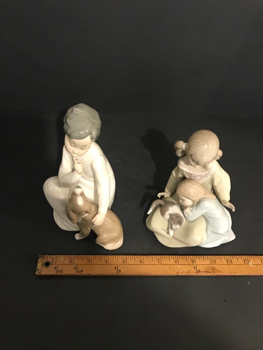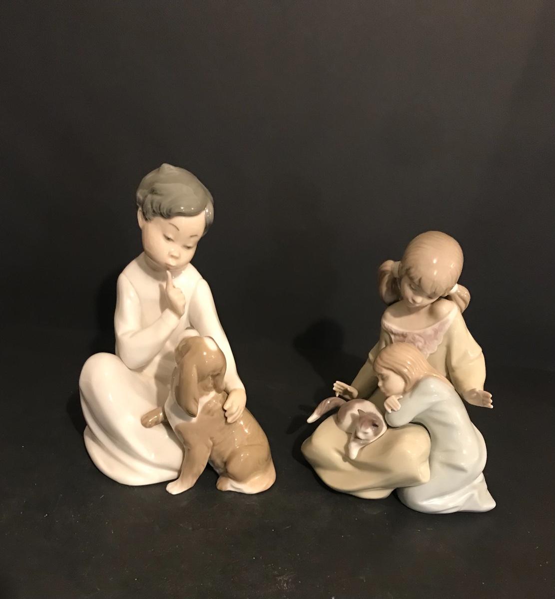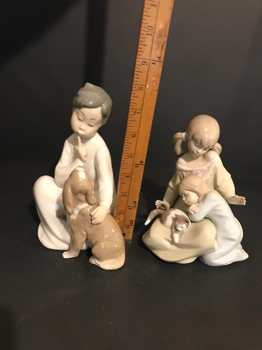 Little Sisters With Cat #1534 Boy With Dog #4522. All Lladros are in excellent vintage condition without original boxes, except where noted. All items have been inspected and any damages or imperfections have been photographed and noted to the best of our knowledge and ability. It is the responsibility of the buyer to inspect all pictures, as they are the best representation of the items. The pictures show condition, measurements if taken, and what is included in the lot. Upon pickup, it is the responsibility of the buyer to inspect their items prior to leaving the premises. Once the items leave the premises, there will be no refunds or returns. Buyers are also responsible for bringing their own boxes and packing materials for their items. Thank you.