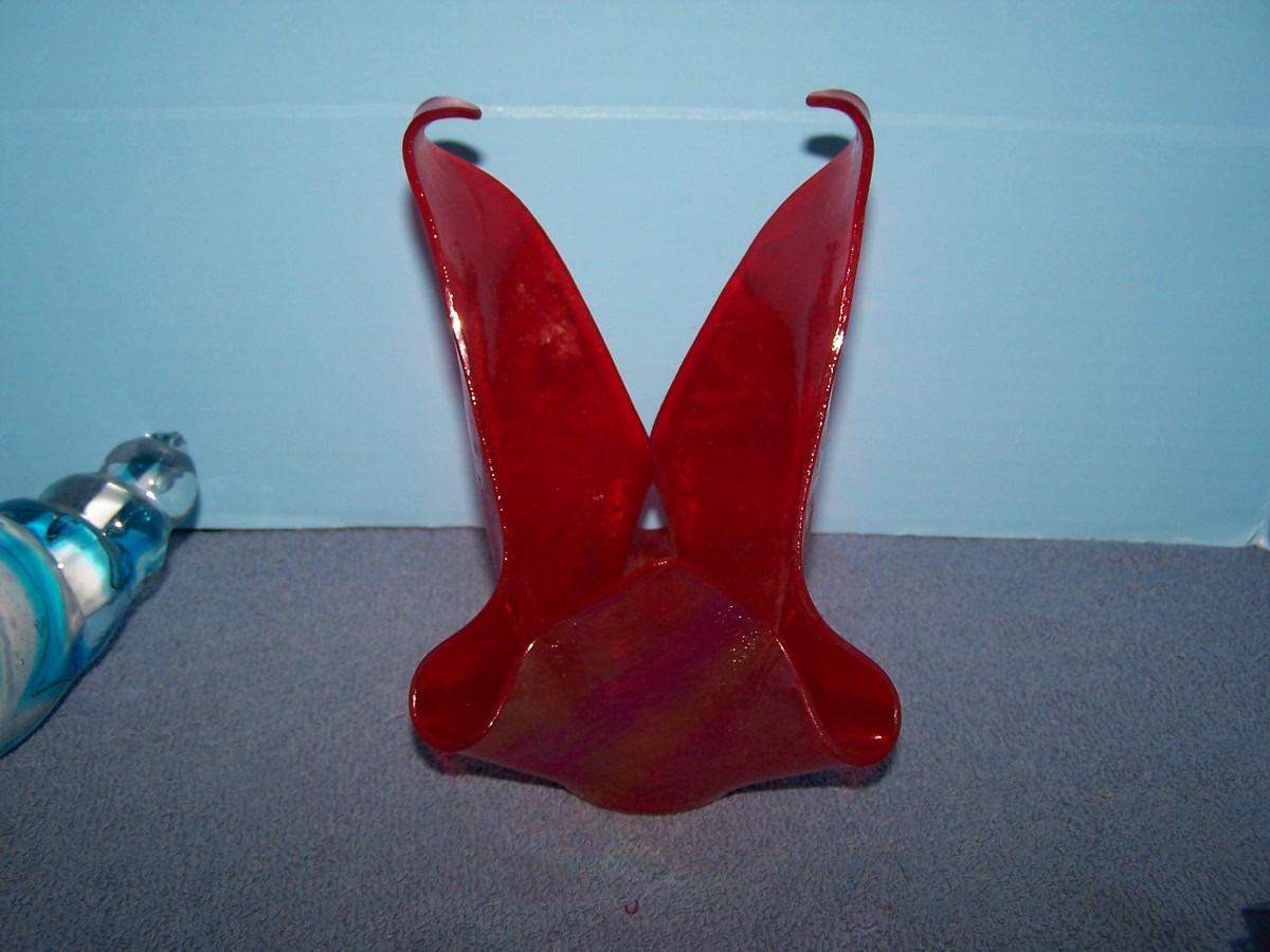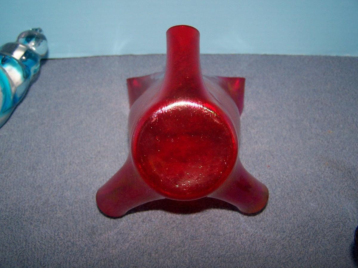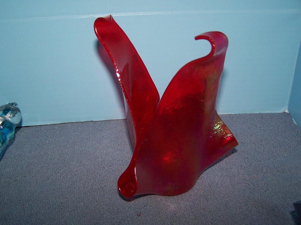 THIS IS SOME LOVELY CONTEMPORARY ART GLASS!!! UNMARKED.. RED VASE-7 1/2'' TALL.. LIGHT WEAR..