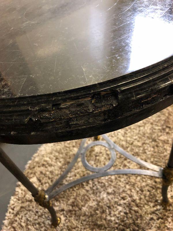 18 dia. x 25 Tall has chip on one edge Black Brass details on iron base