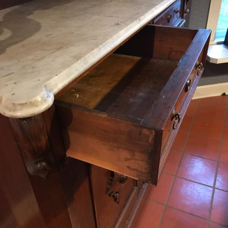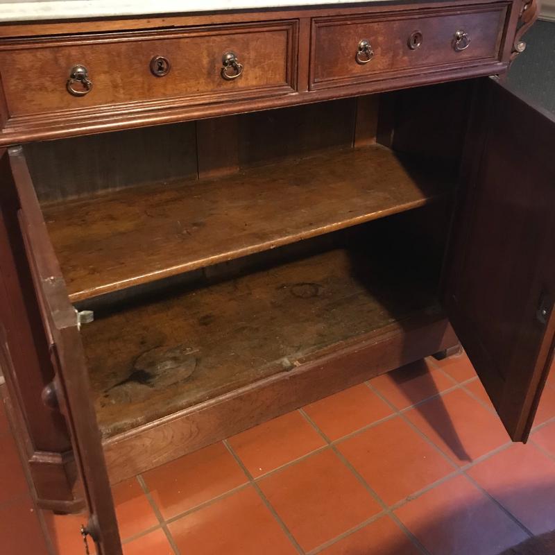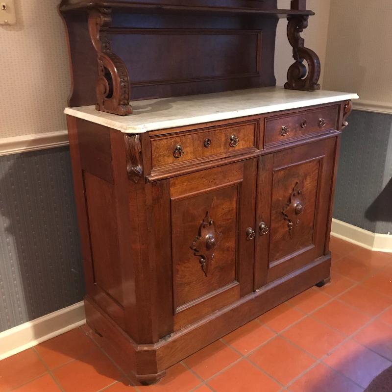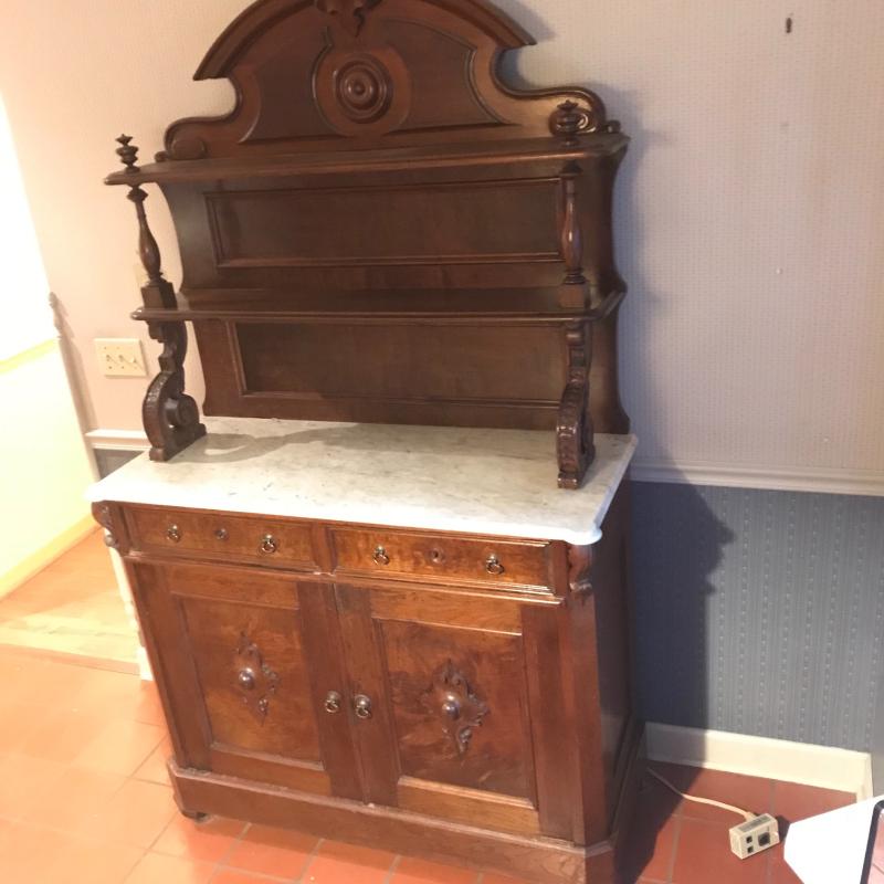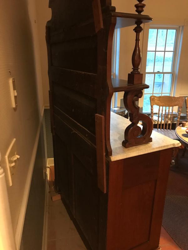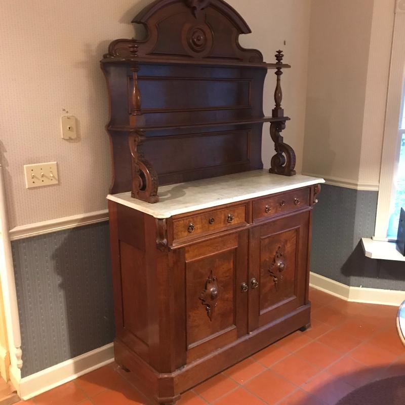 Appears to be in three pieces but is a substantial piece (Fortunately it's on the ground level of this home.) No apparent damage or markings. Measures 51” x 21” xc 87” and is on casters. Please bring people to help you move and load it. Lot is available for local pick up only in a Flat Rock, NC.