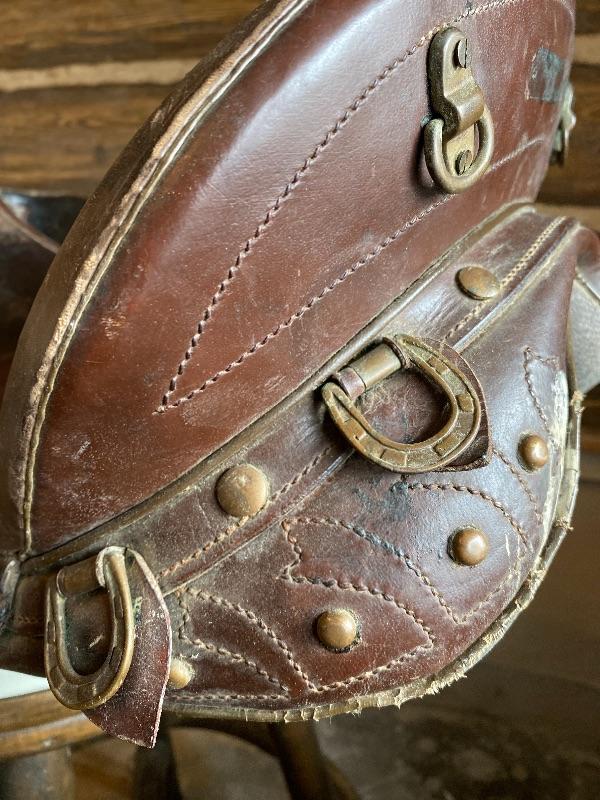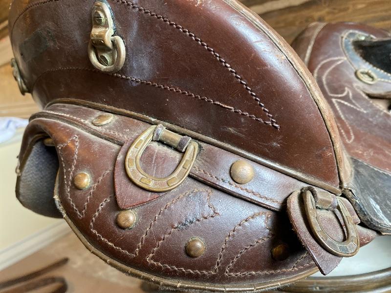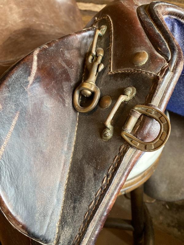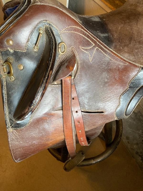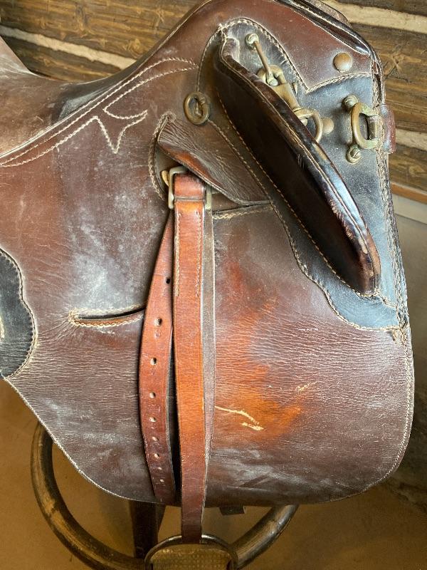 Lot 66 Nice Vintage Leather Saddle Stitching Dressage Brass Hardware Riding Saddle Horse Western Military?