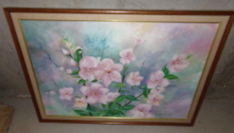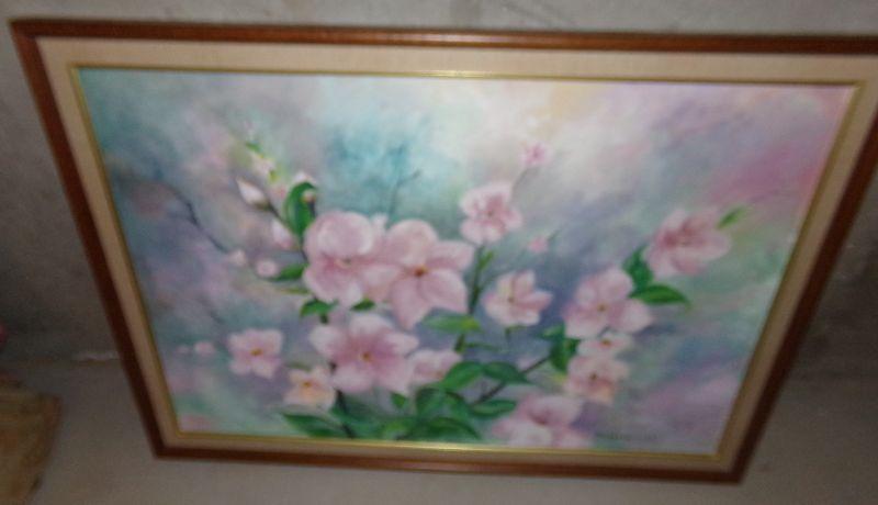 PINK FLOWERS IN OILS ON CANVAS