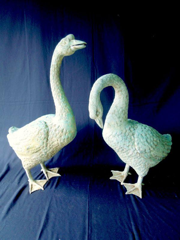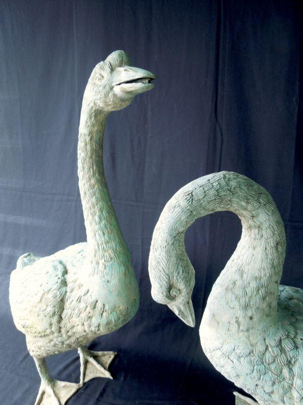 Lot 66: Pair of Verdigris Garden Geese With Spitter Fountain