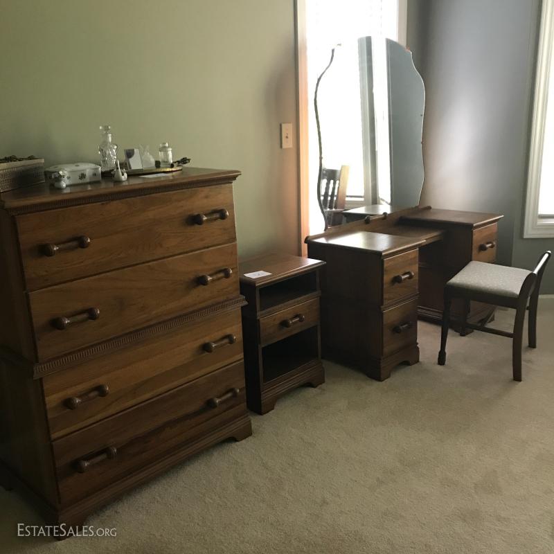 4 Piece pecan vintage Mid Century Modern bedroom set: