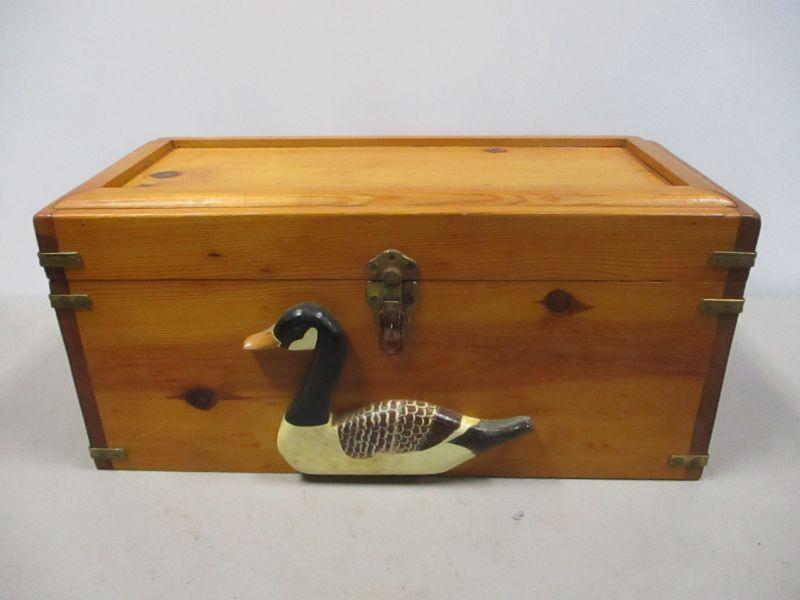 Lot 66 - Hand Crafted Solid Pine Memory Box with Waterfoul Applique