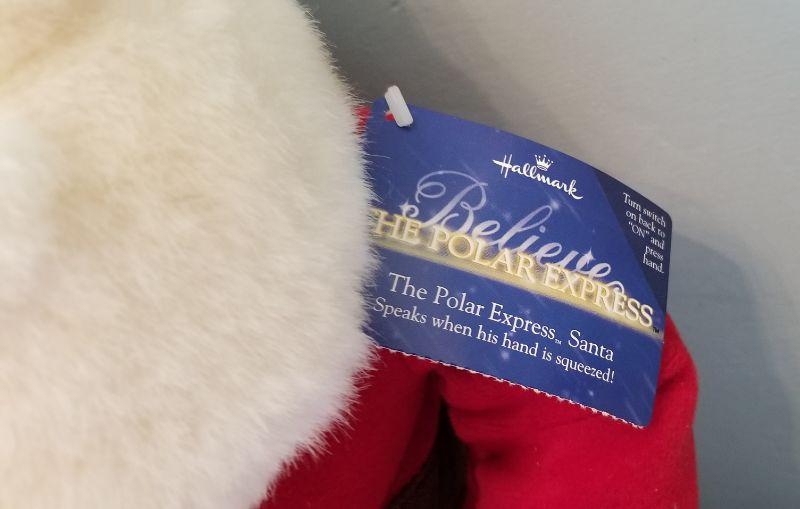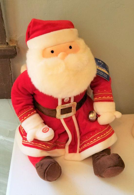 We found these three Hallmark plush Christmas decorations still sitting new in the bags. They do not appear to have batteries in them, so we don't know if they light up, etc. Clean. with tags. The Santa is 18" tall. "Tis the Season!