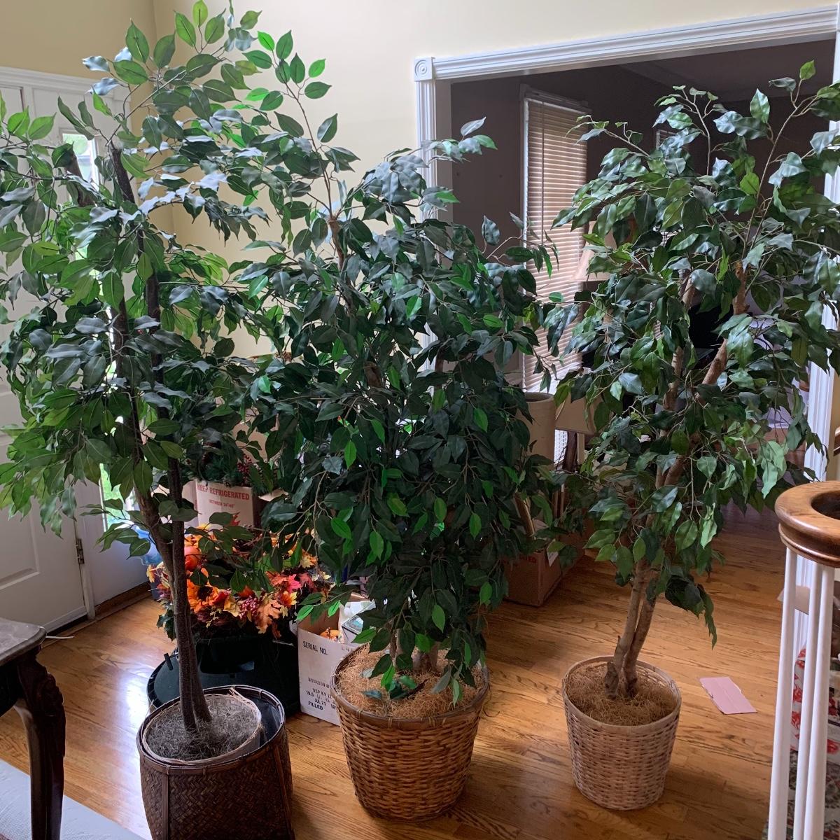 These faux ficus trees look like the real thing and you’ll never have to water them or worry about them dying! Each tree comes with its own unique basket and ground covering. The three of these stand approximately 68” tall. Local pickup only