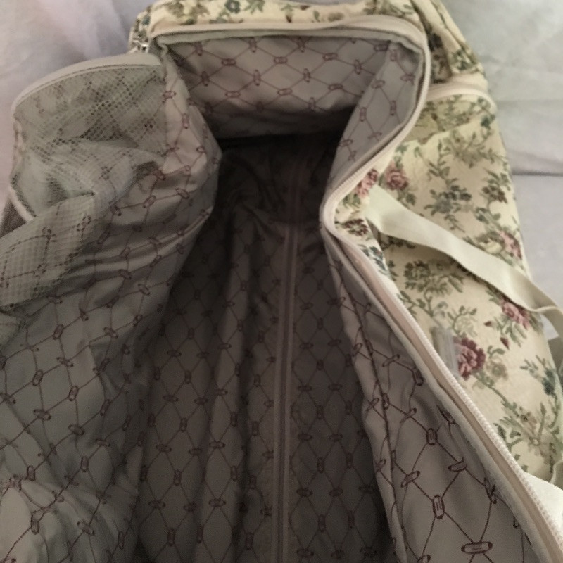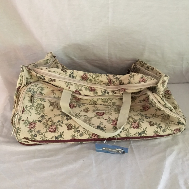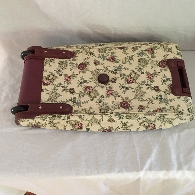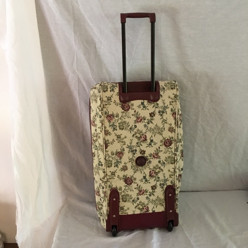 Make your next trip that little bit easier with this collection of travel essentials that includes a pretty rolling duffel bag, toiletry bag, bag flags, travel iron, pair of travel umbrellas and more. Rolling duffel measures 15” x 28” x 14.5”.