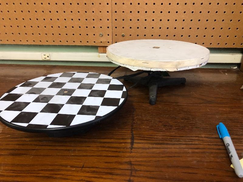 Two rotating stands one is battery operated one is a plug-in: Vintage used condition, not tested